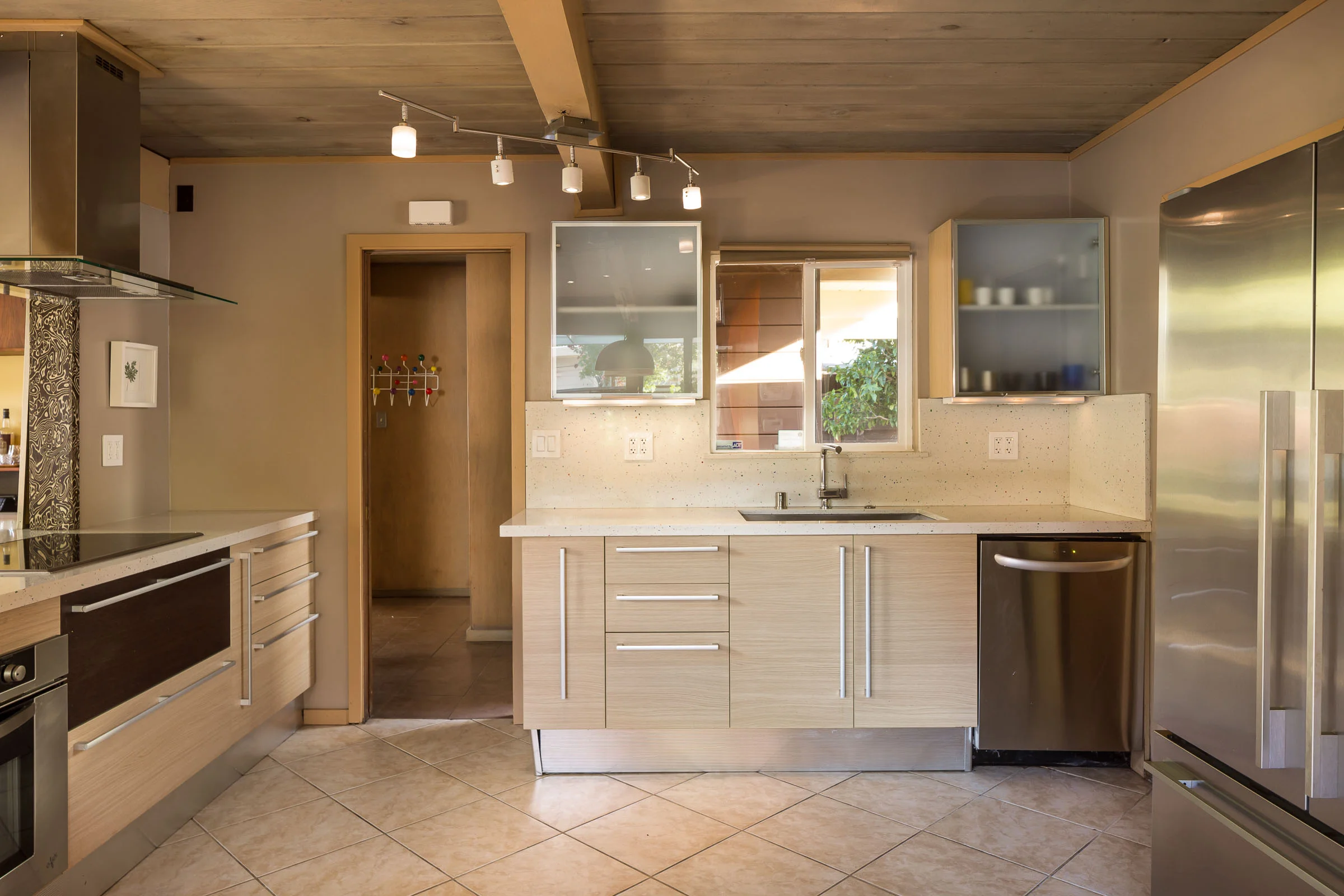 Lovingly cared for by only its second set of owners, this home’s original mahogany wood walls throughout the living spaces, built-in Scandinavian shelves, and iconic floor-to-ceiling windows in the living room are among the property’s architectural treasures