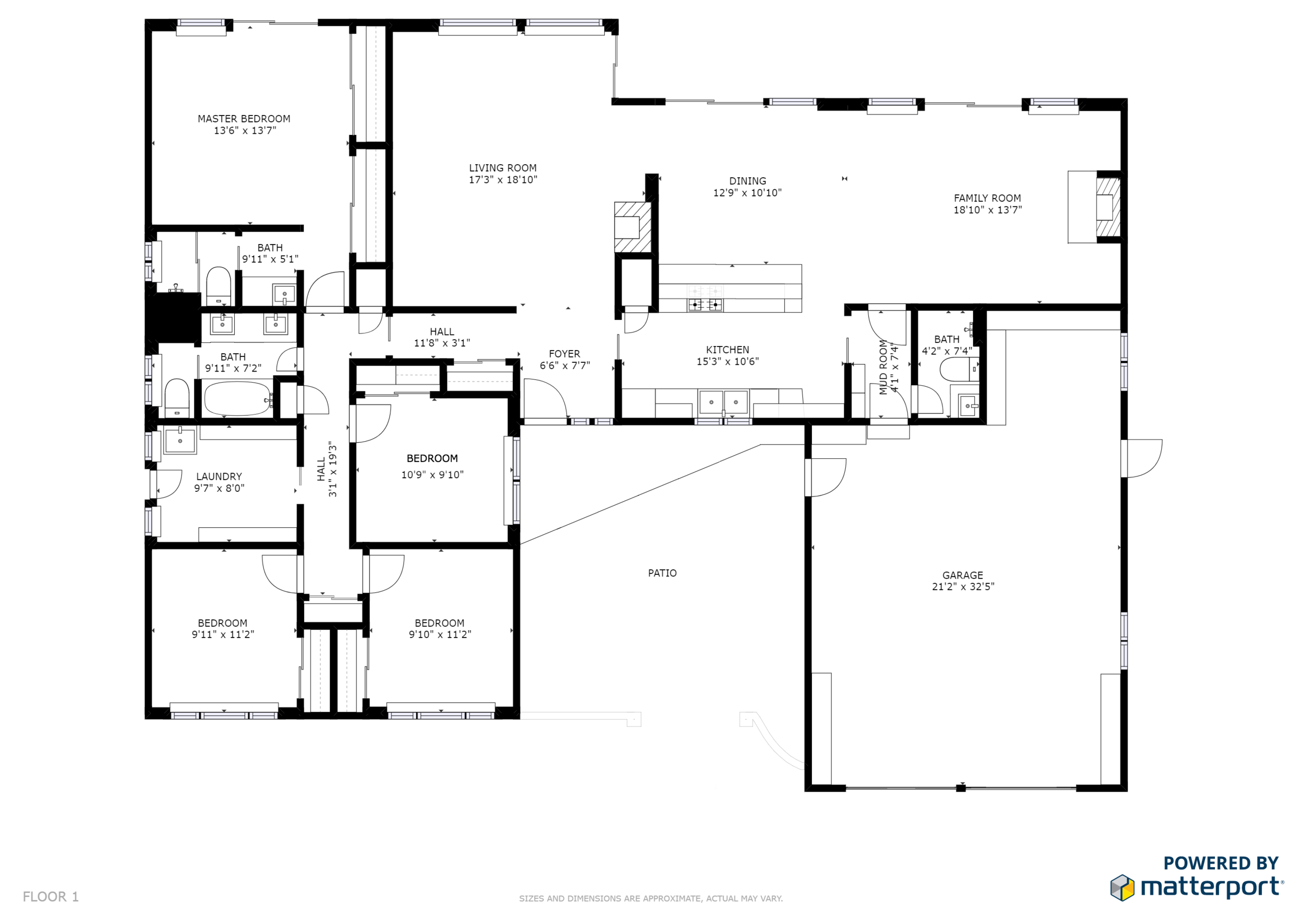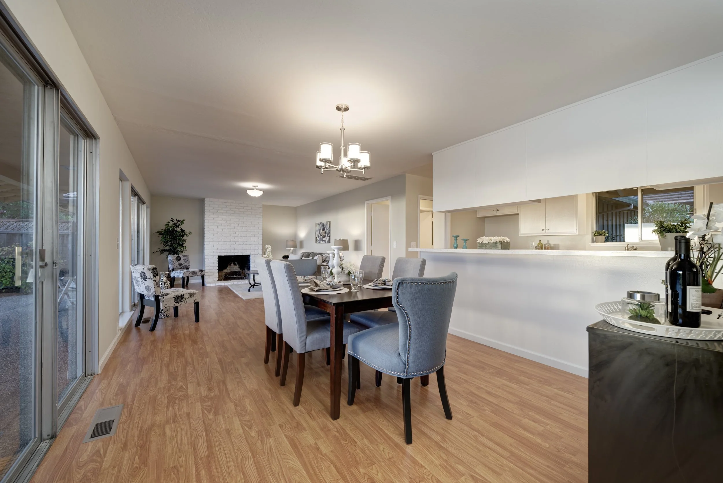 - Passing through into the dining and family room, morning sunrises bathe warm light through a pair of glass sliding doors that lead out to the covered backyard patio.