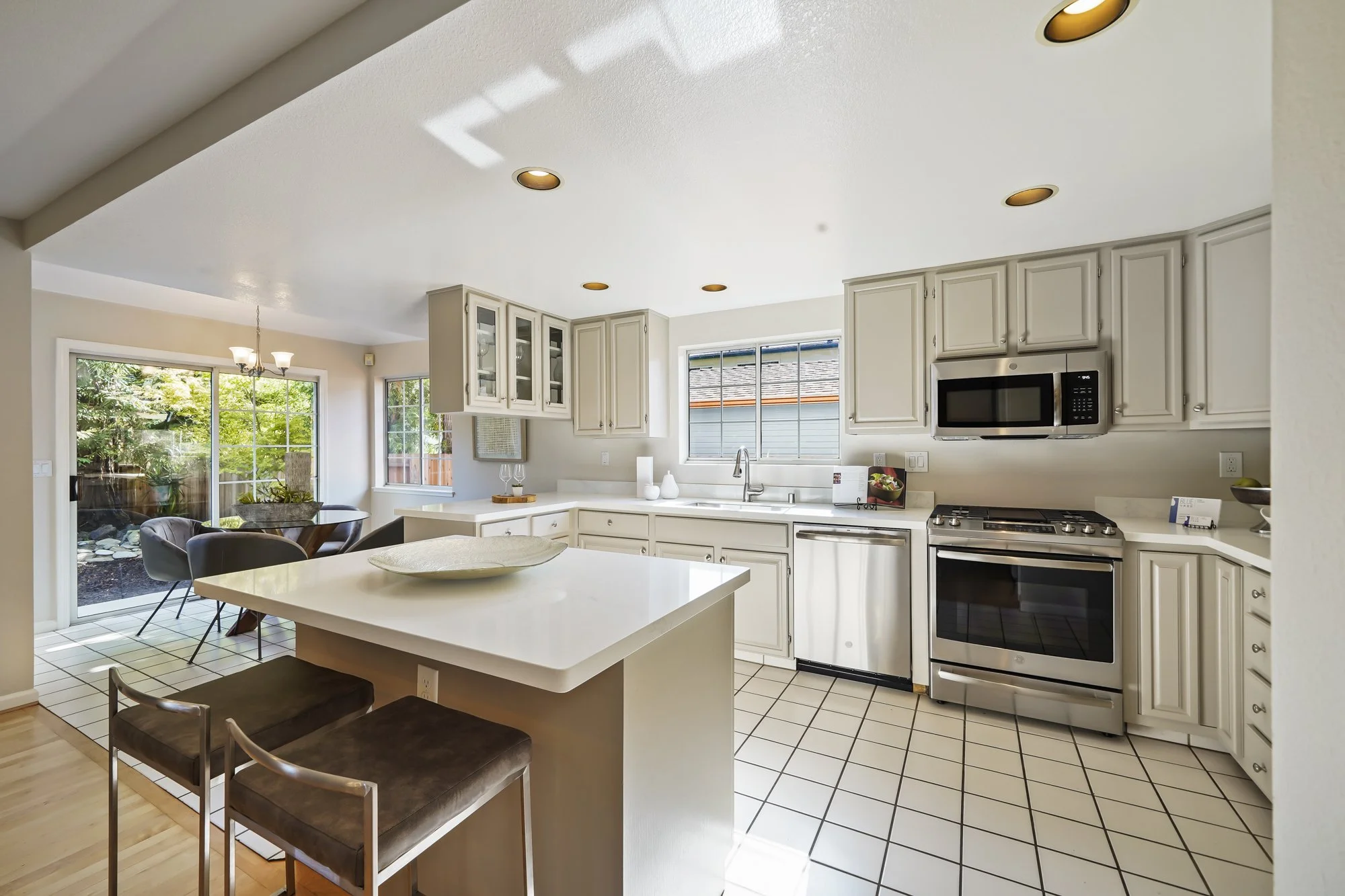 Saturated with warm natural light, this updated 4 bd/2.5 ba home showcases a sky-lit floor plan, easy indoor-outdoor living, and a very central location