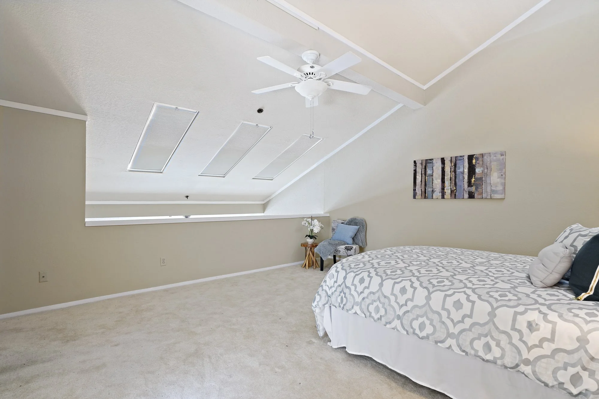 The sky-lit staircase leads to a sensational second-level master suite holding a sky-lit bathroom, an oversized walk-in closet, and clerestory windows