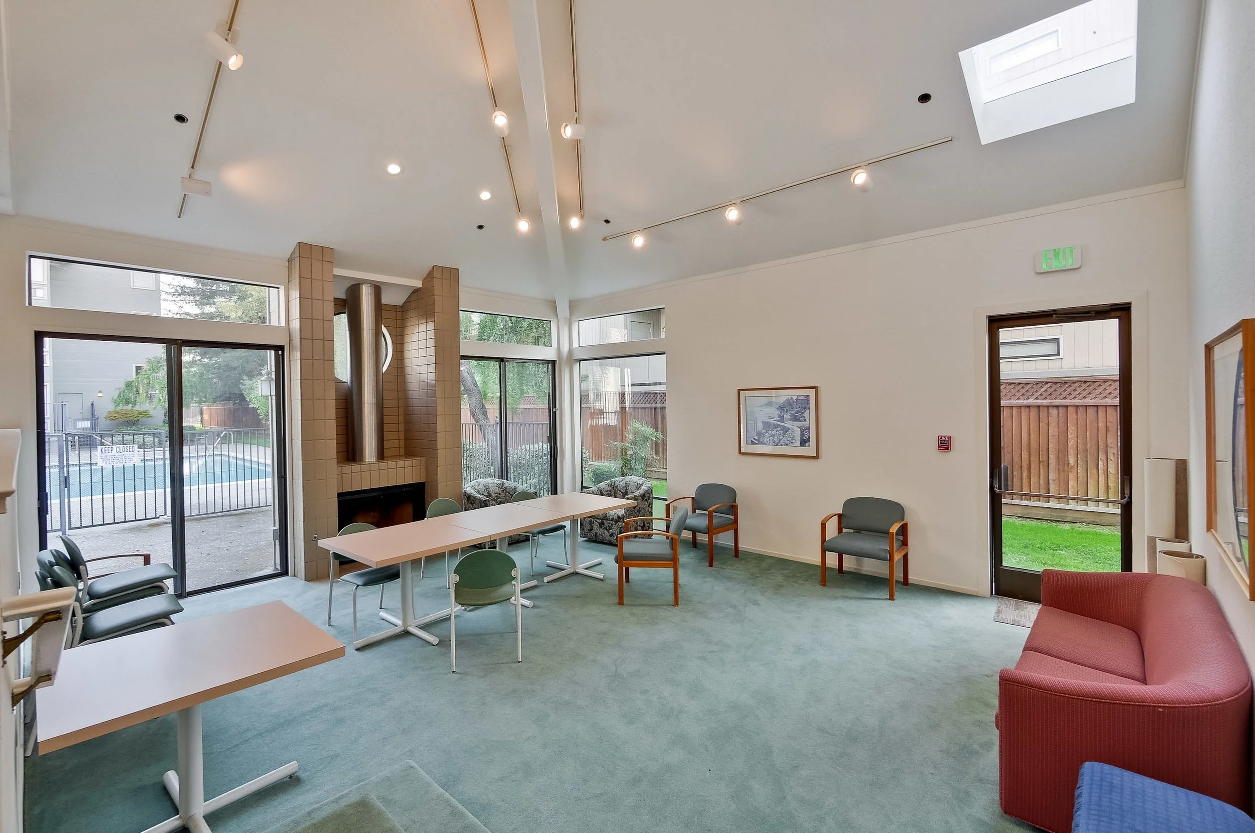 A secure complex holds this must-see home, and includes a courtyard-style green space, a gated pool and spa, a recreational lounge with a fireplace, reserved parking spaces, elevator access, and more