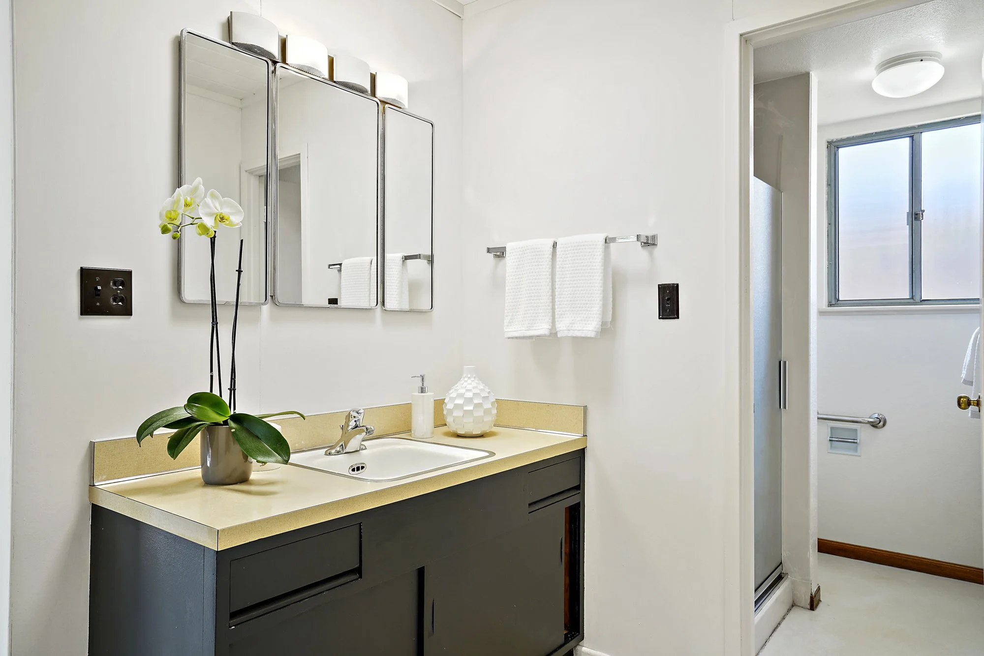 Down the hallway, extra closets, washer/dryer, and bathroom are conveniently accessible