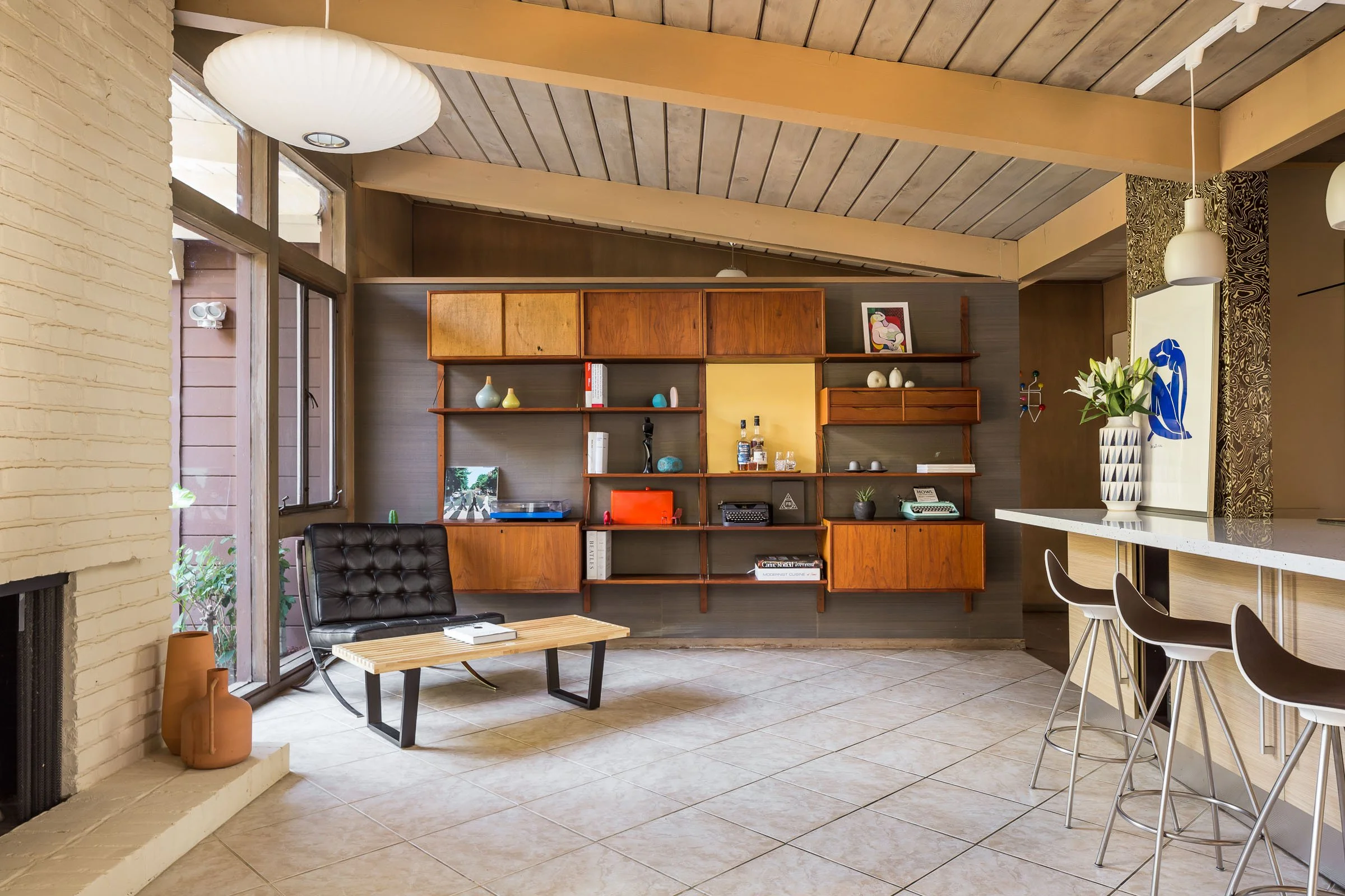 • Lovingly cared for by only its second set of owners, this home’s original mahogany wood walls throughout the living spaces, built-in Scandinavian shelves, and iconic floor-to-ceiling windows in the living room are among the property’s architectural treasures