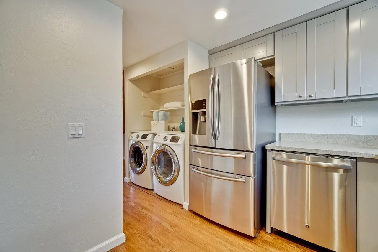 Upgraded dual-pane windows and sliding doors increase the home’s energy efficiency, while a convenient laundry center offers oversized Samsung appliances