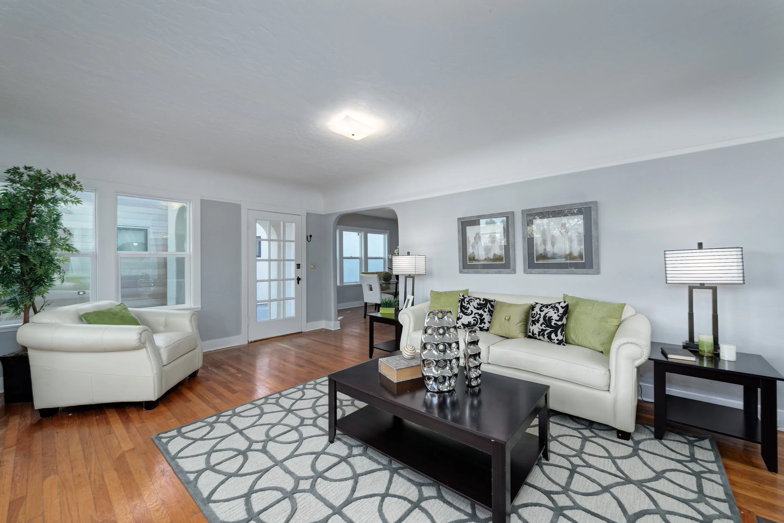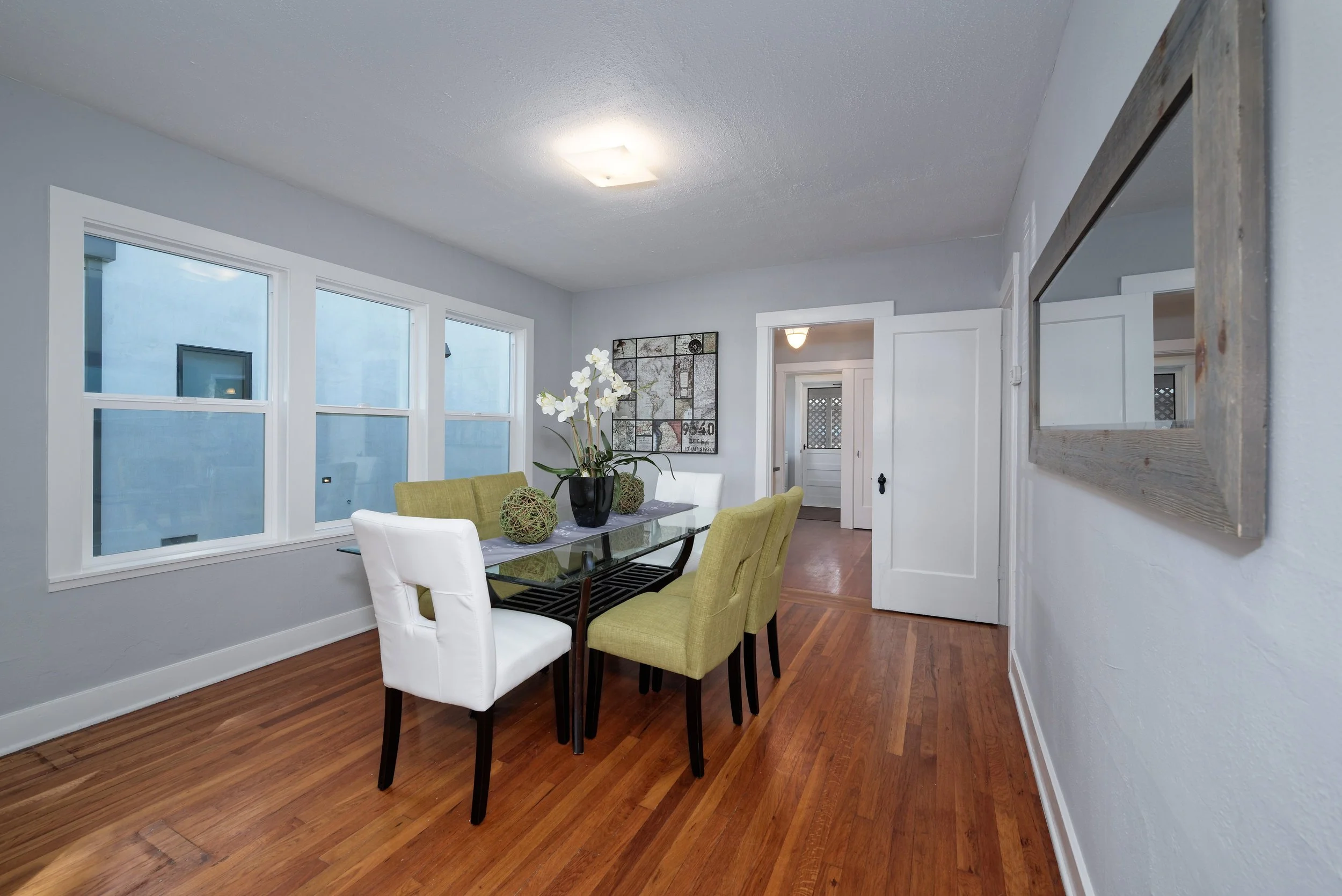 - The bright, inviting floorplan showcases hardwood floors and spacious gathering areas that connect to outdoor retreats, providing for easy, comfortable living and entertaining