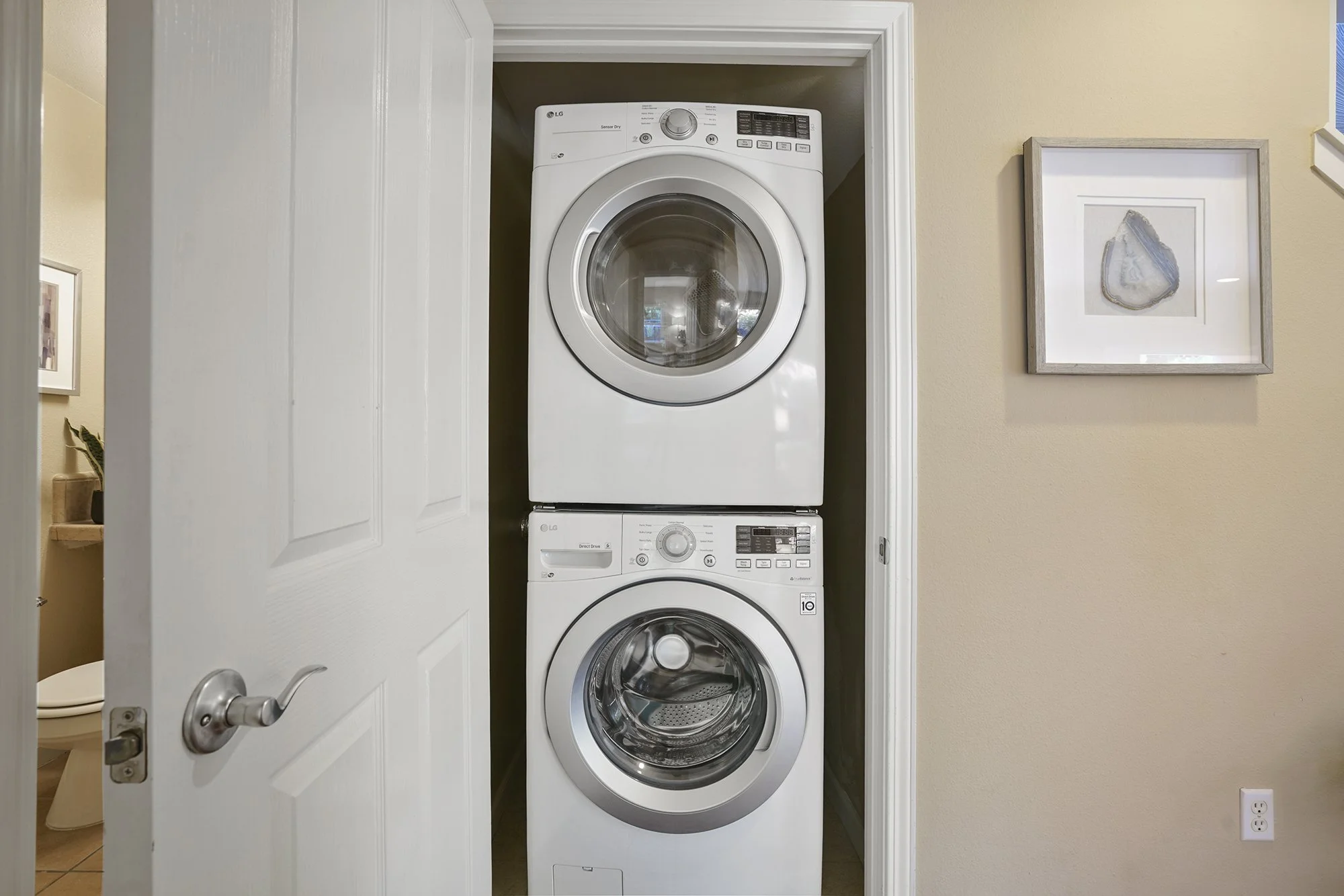 Convenient downstairs bedroom is next to the full hallway bathroom and closet with newer washer/dryer stacked units