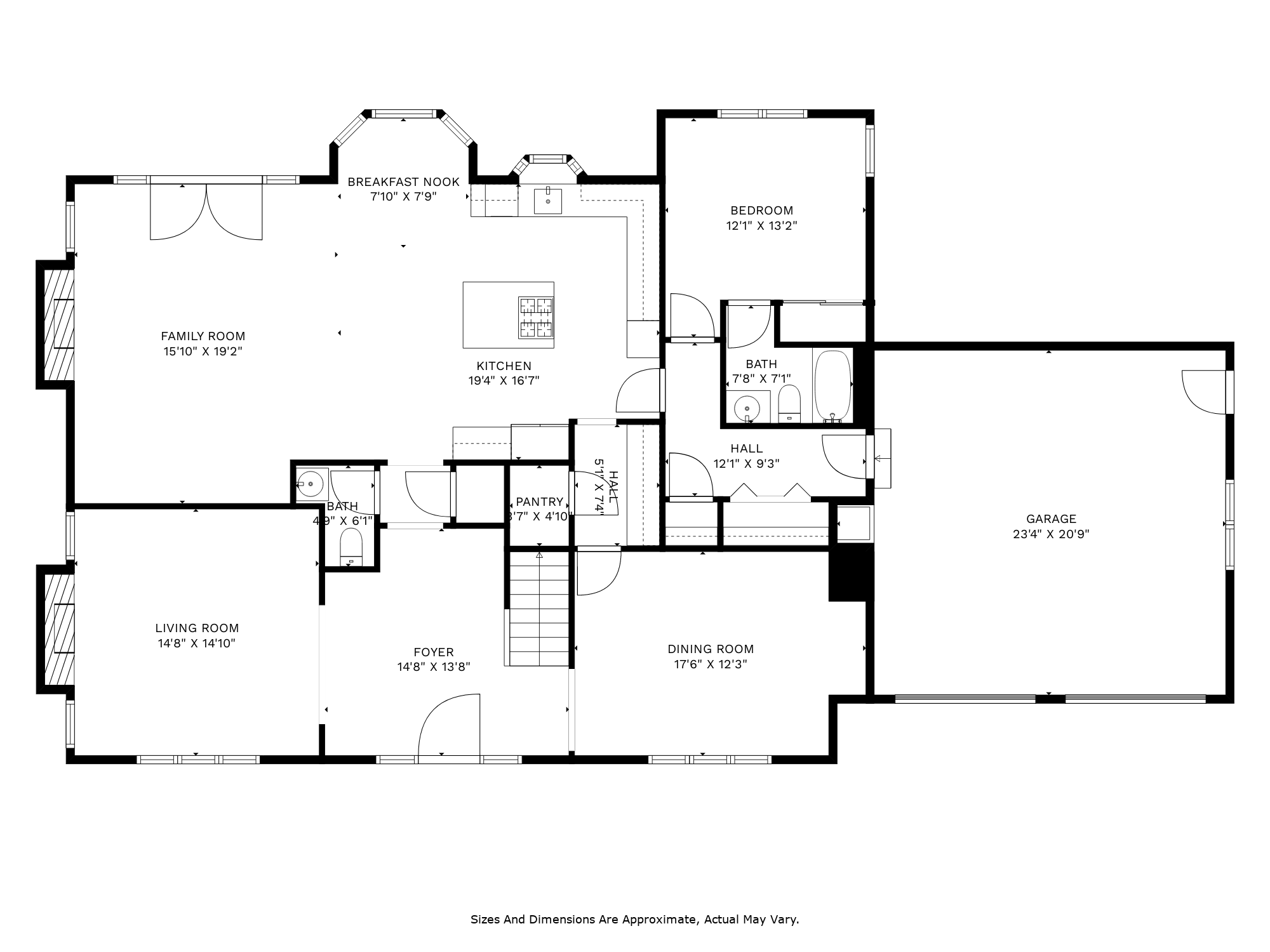 The interior features maple floors, carpeted bedrooms, recessed lighting, and fireplaces in both living and family rooms