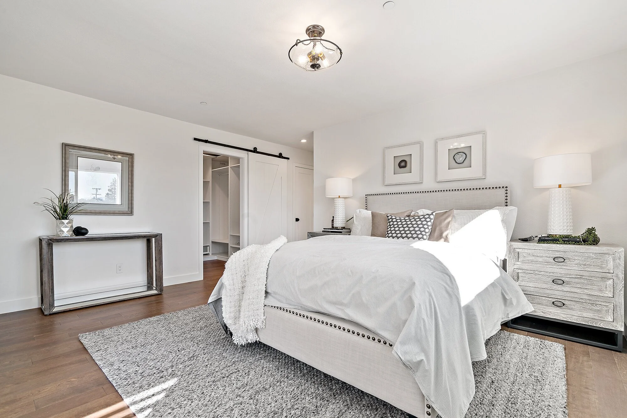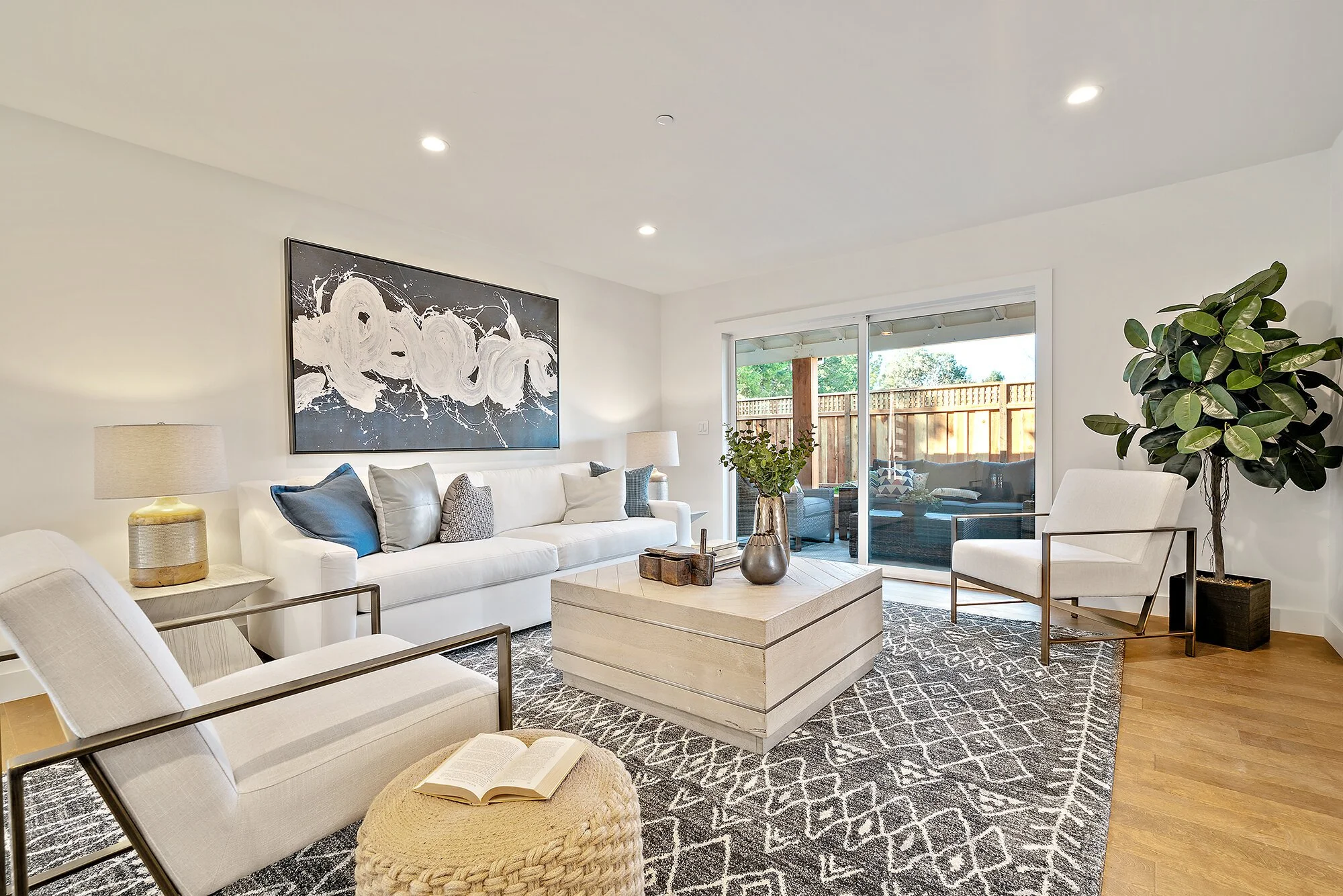 Wide-plank floors, fashionable baths, and updated windows by Pella and Milgard bring casual sophistication to the interiors