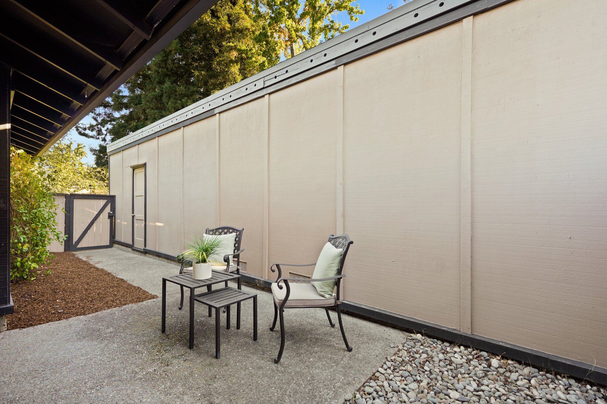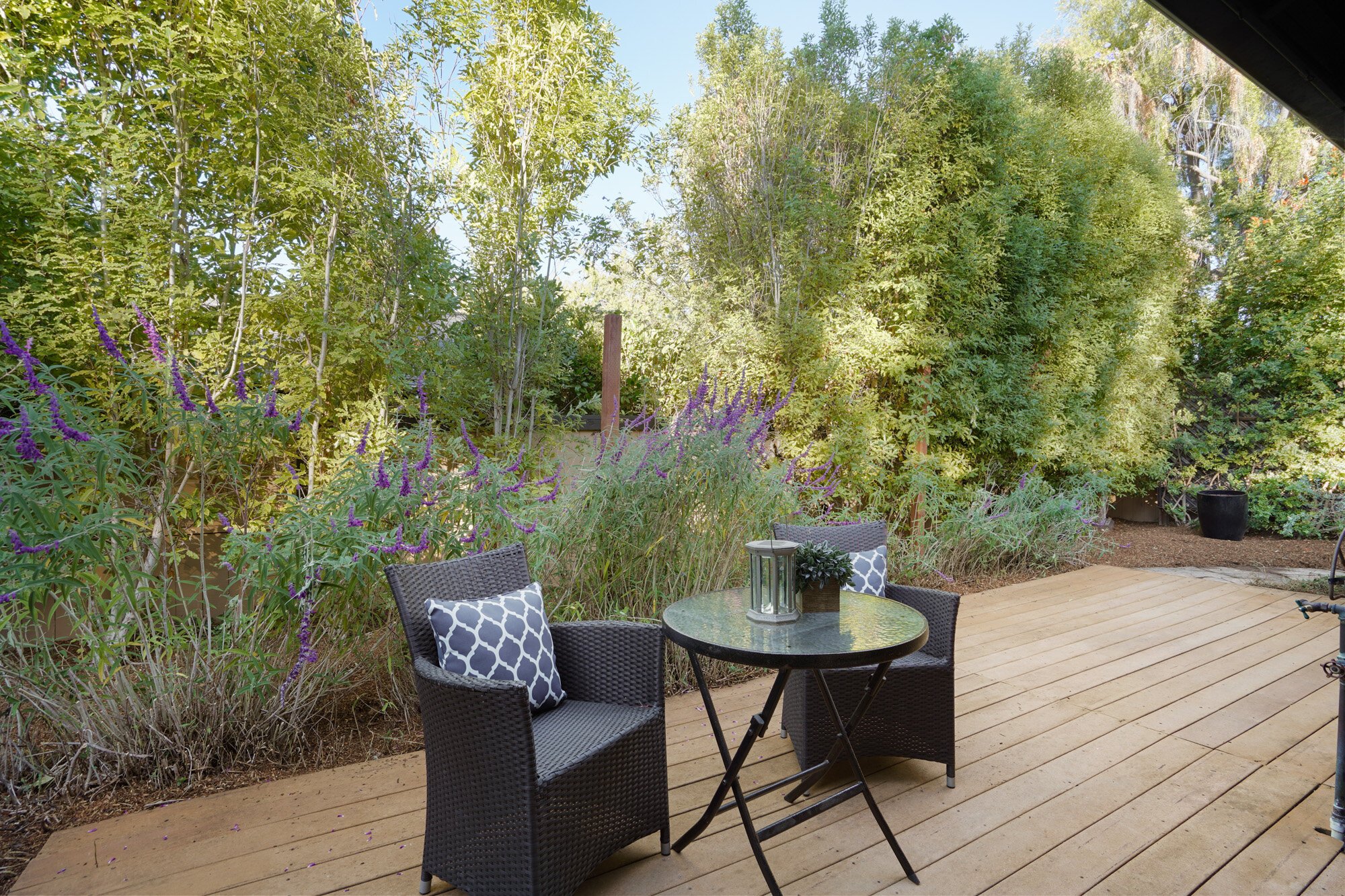 Included are an in-unit laundry, two-car garage, and inviting backyard retreat featuring a large patio, planter box, and hedges for privacy