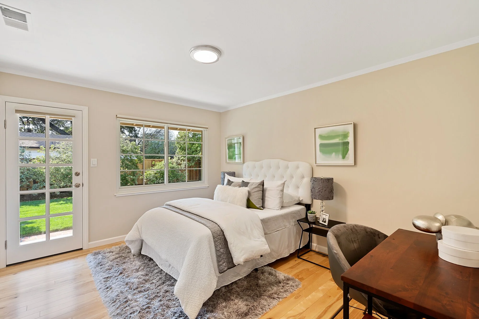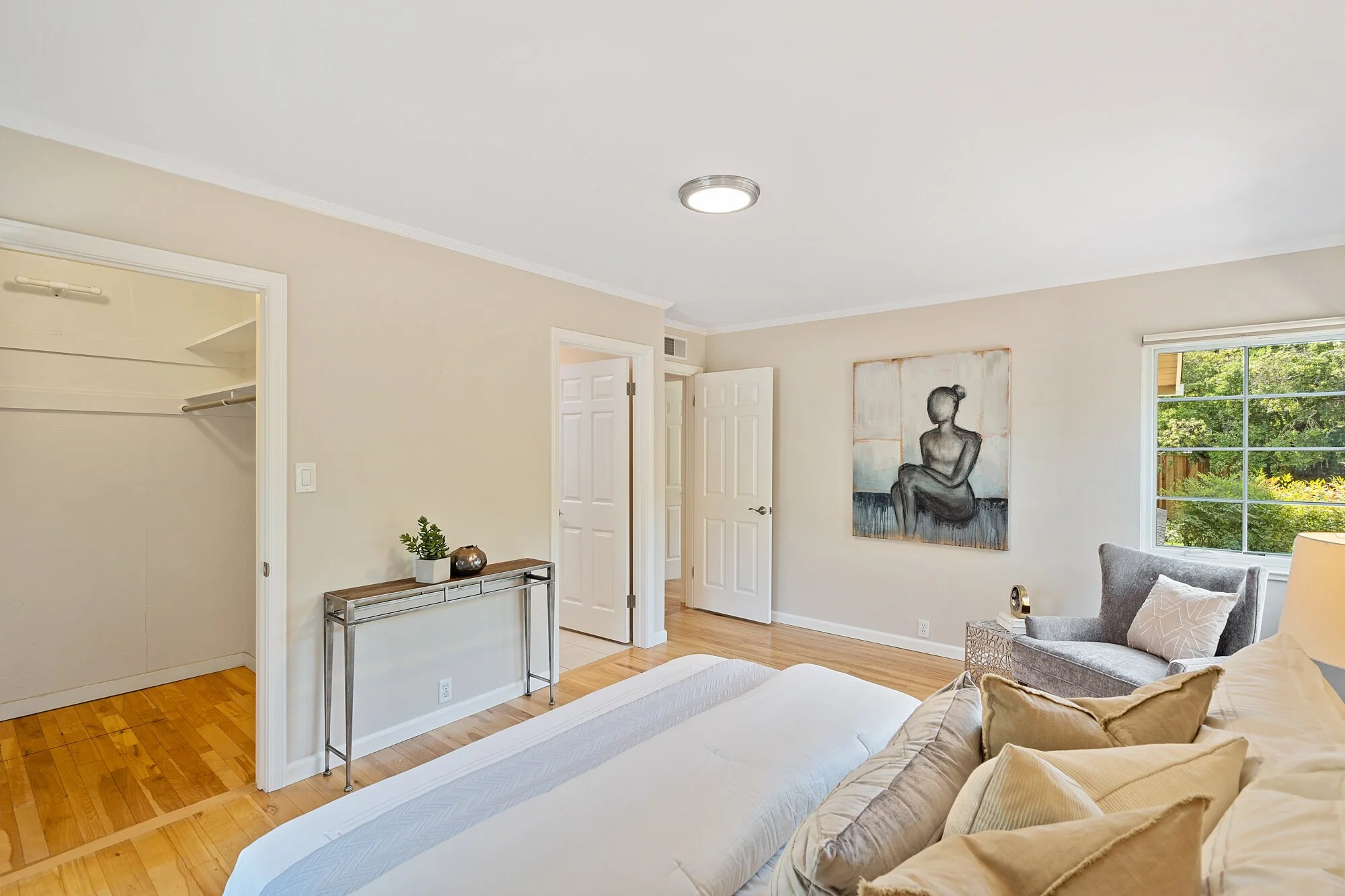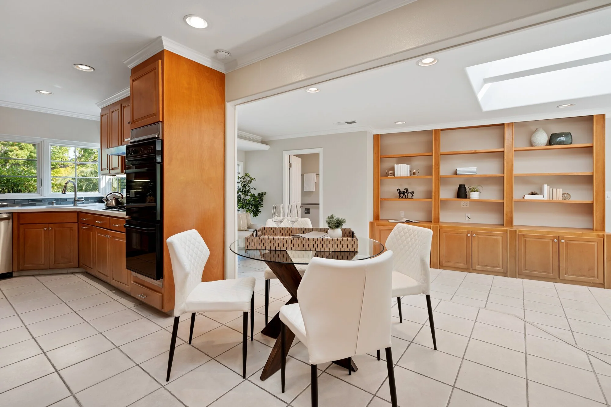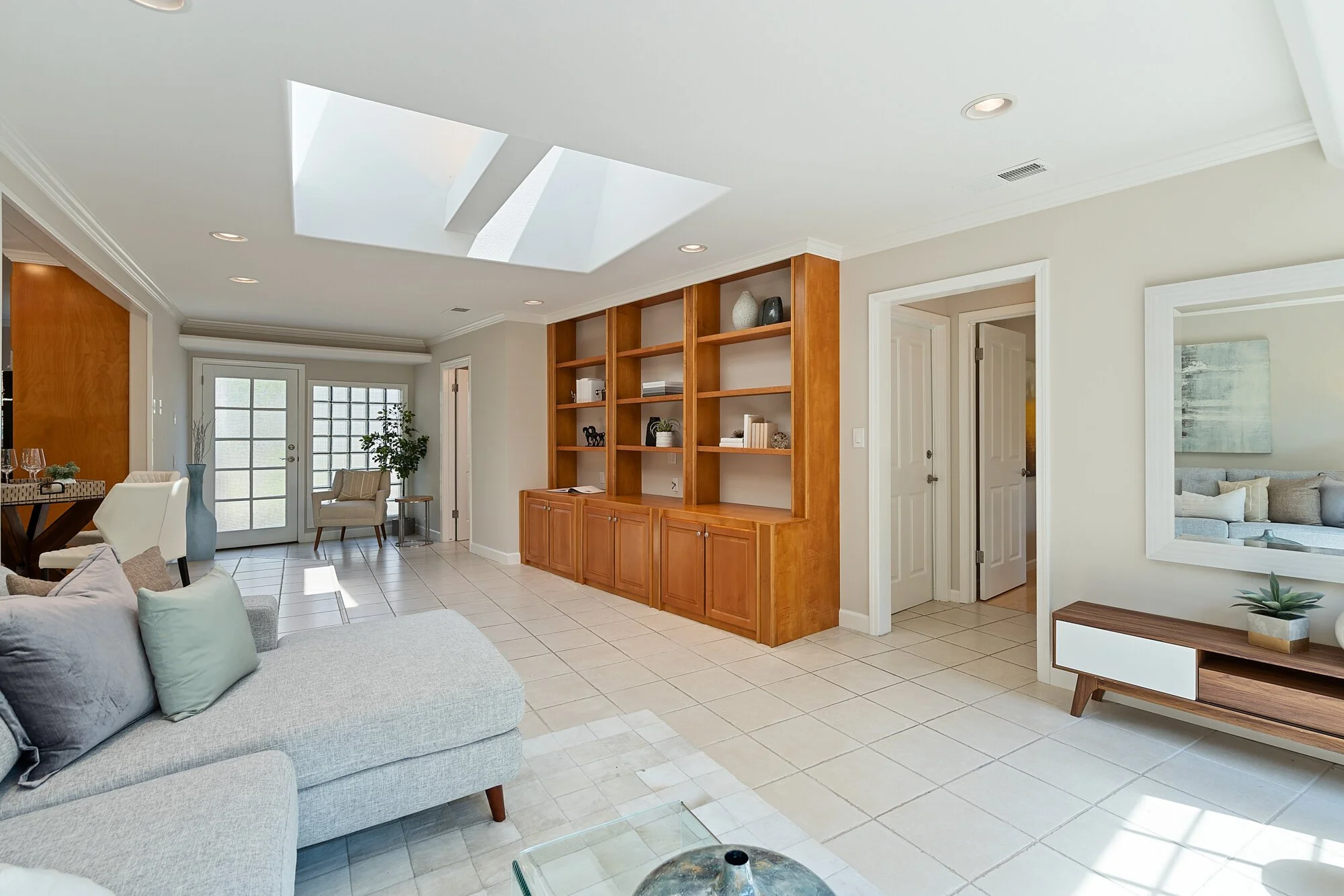 Gorgeous wood floors, crown molding, and Andersen windows blend with multiple skylights and dimmable lights to permit both style and function