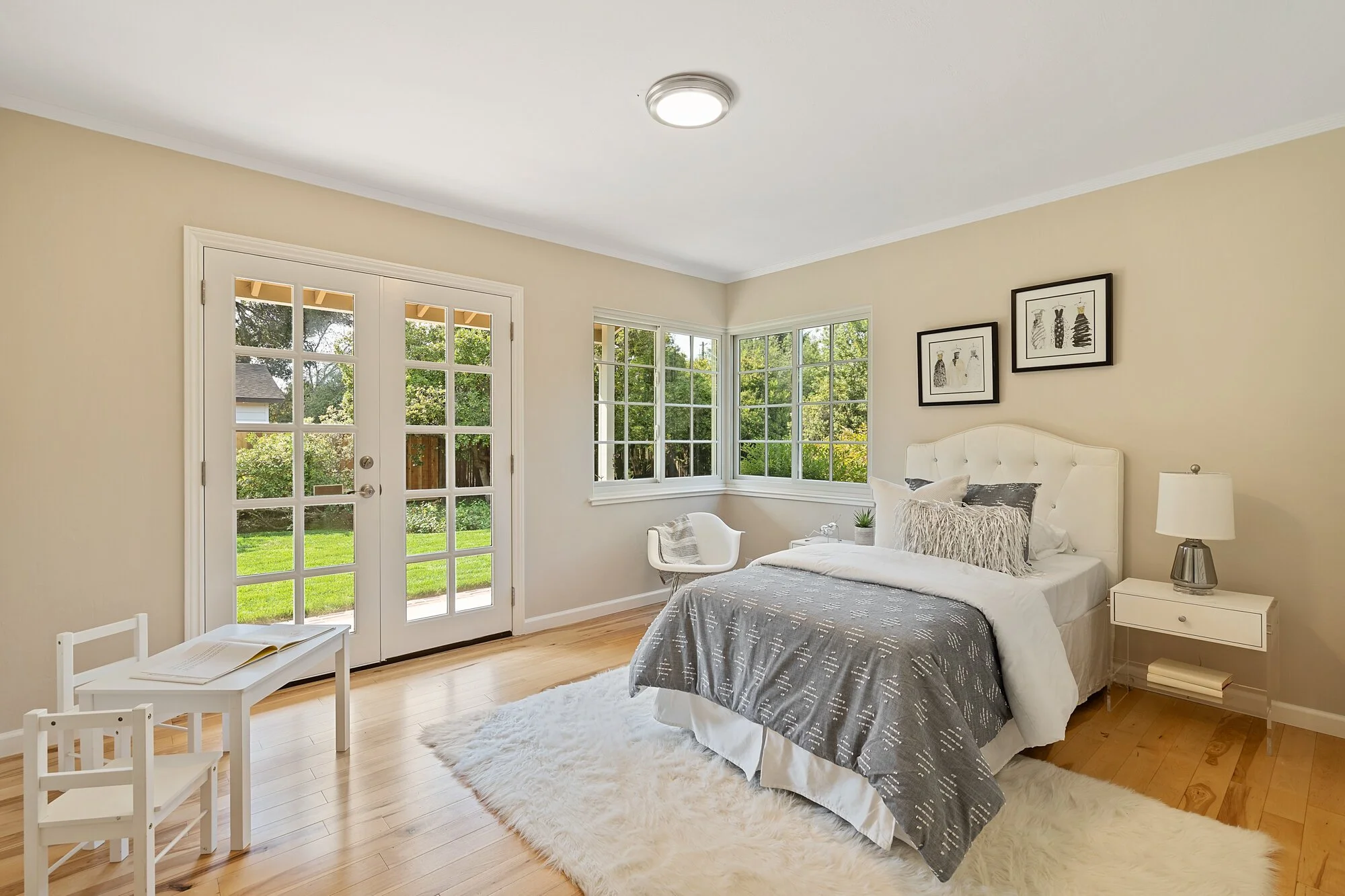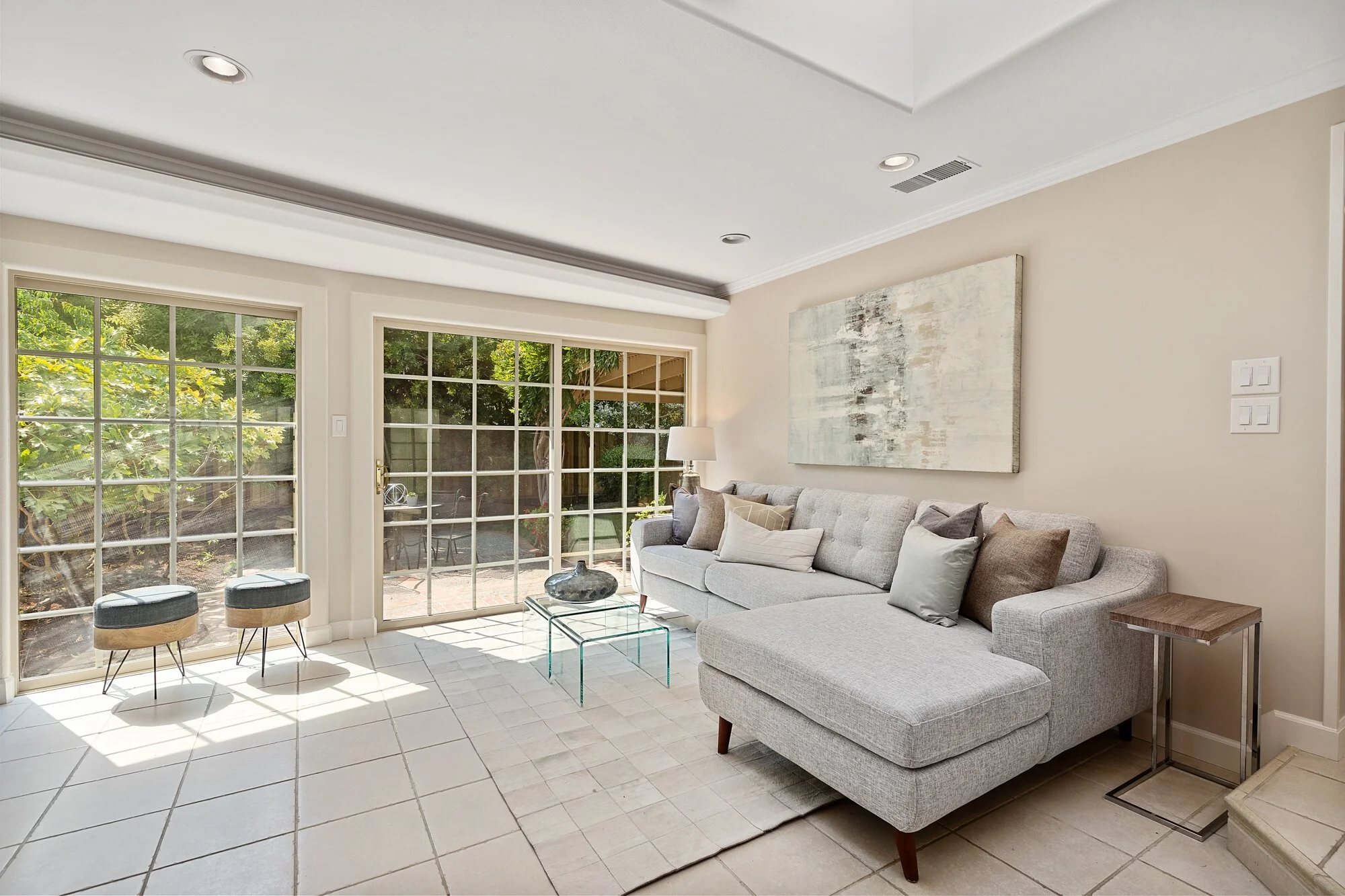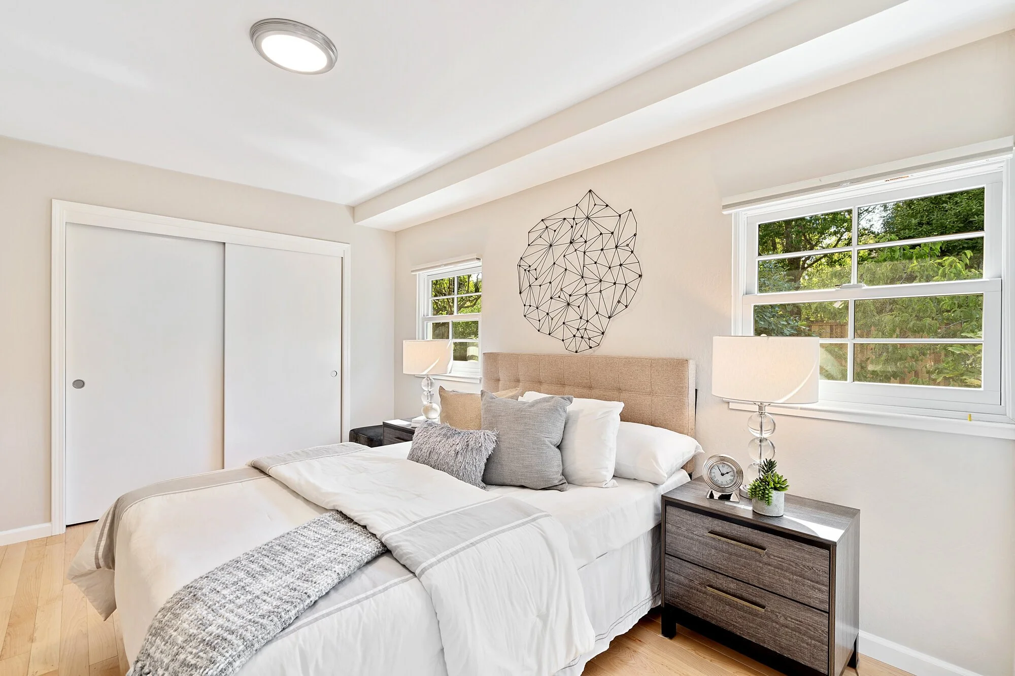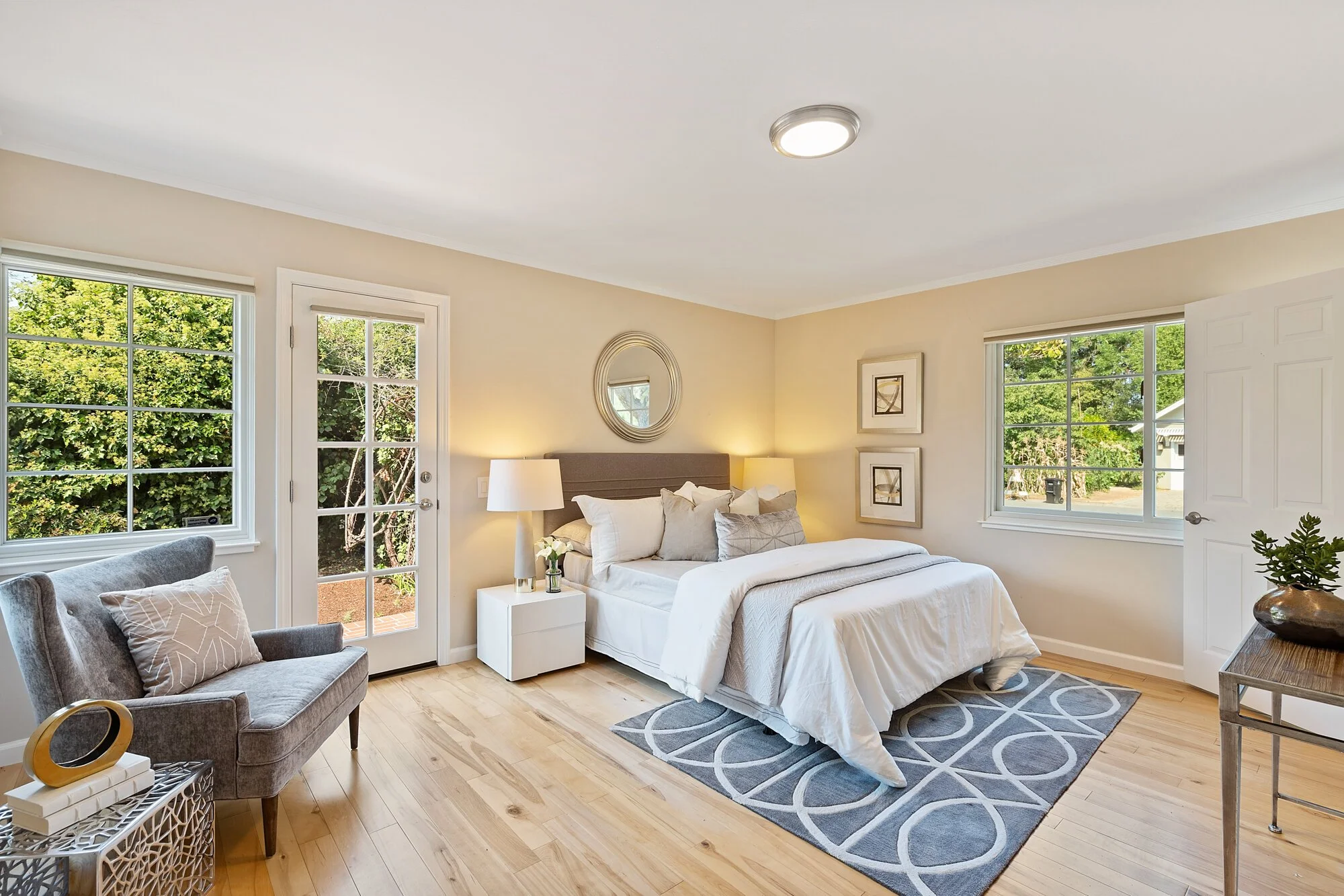 Gorgeous wood floors, crown molding, and Andersen windows blend with multiple skylights and dimmable lights to permit both style and function