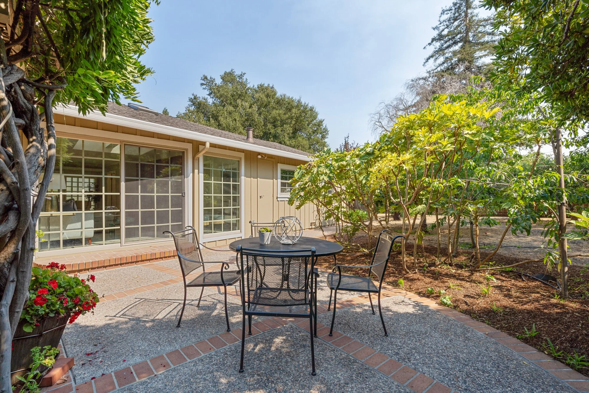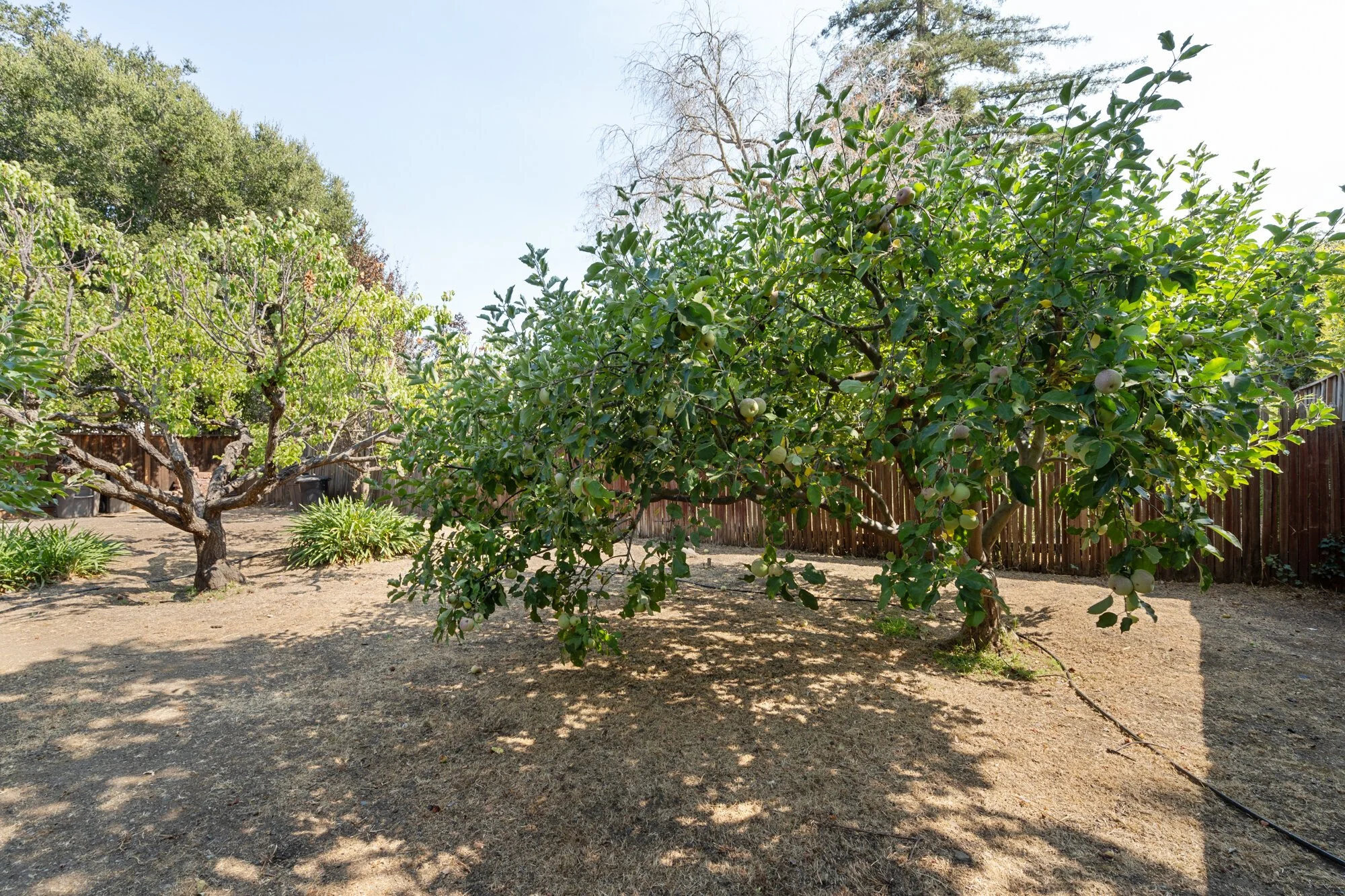 Boasting plenty of space for expansion or an ADU, the private backyard showcases updated landscaping, a vine-covered terrace, and mature fruit orchard