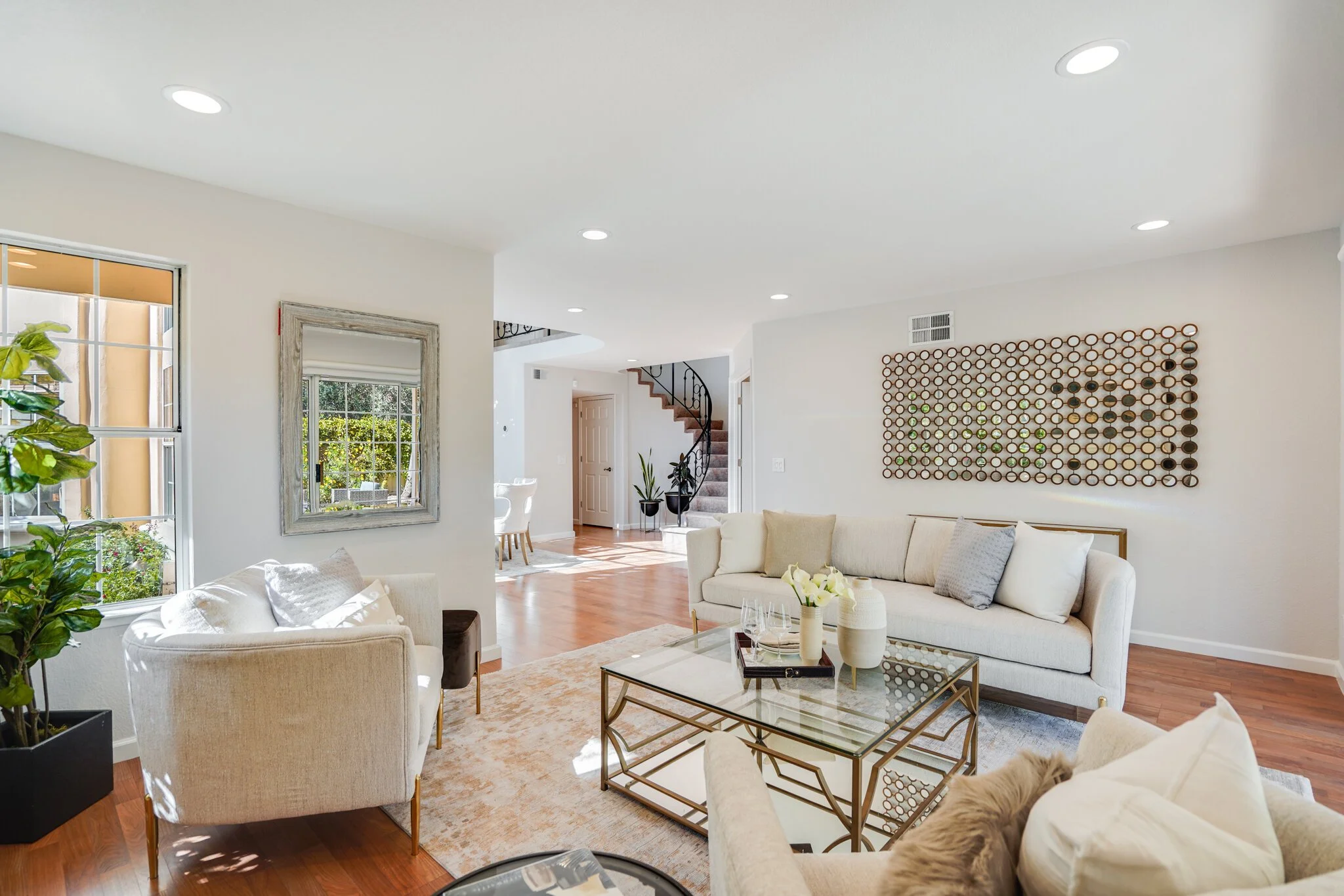 The entire home is upgraded and modernized, with recessed lighting, NEST thermostat, remote-controlled locks and blinds, and an up-to-date security system.
