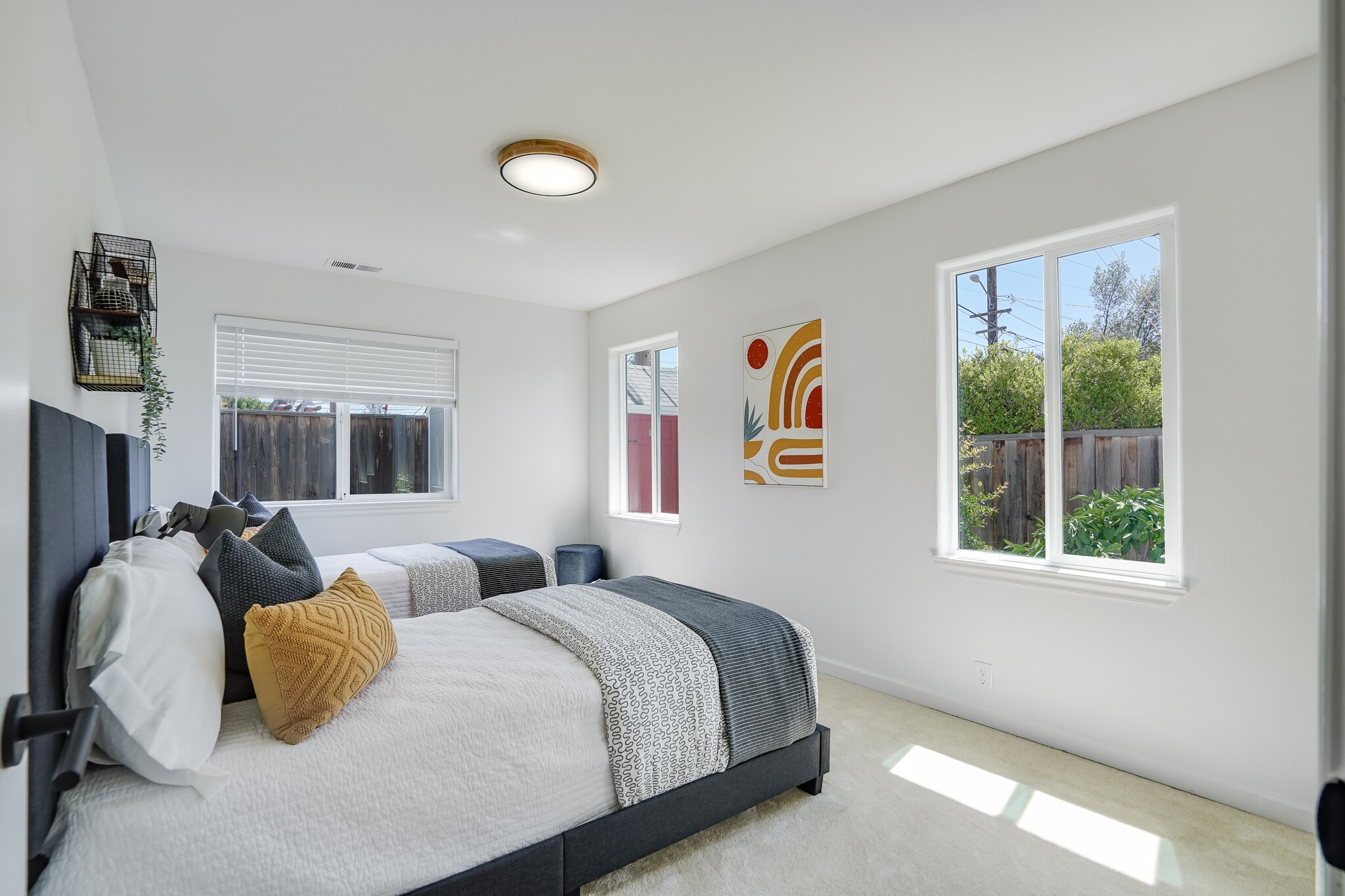Two additional bedrooms are spacious and well-lit