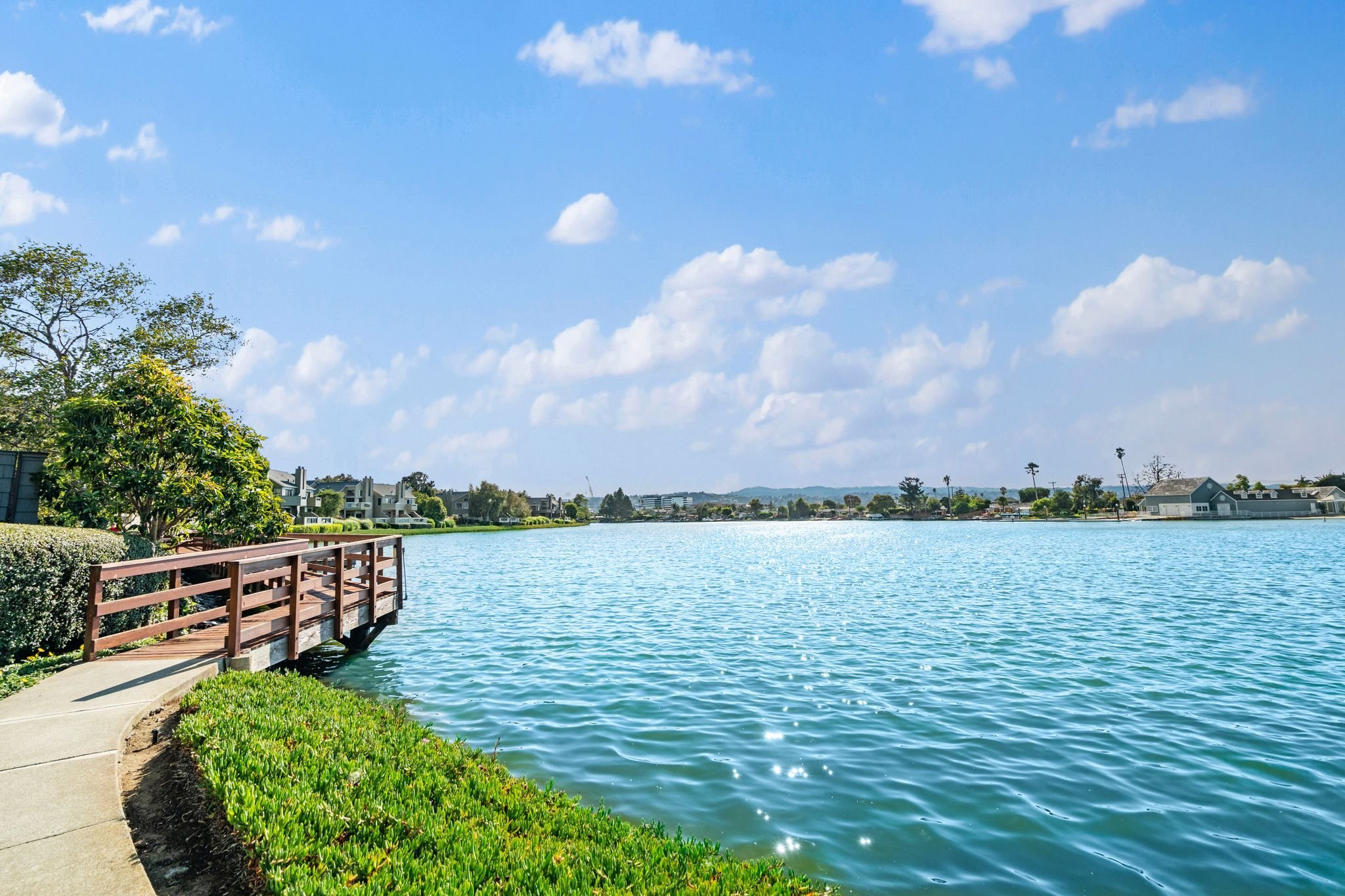 Scenic waterfront trails along lagoon