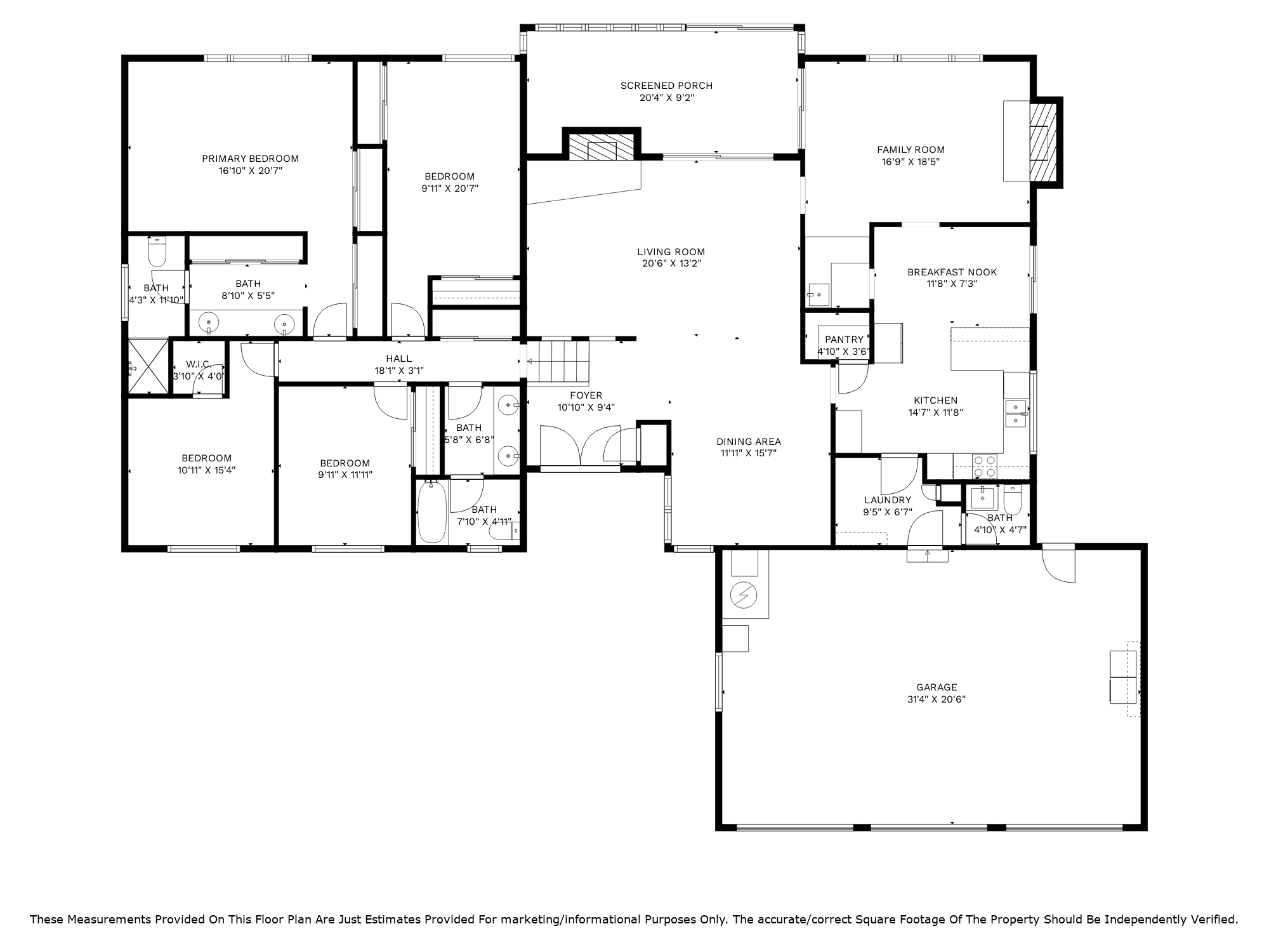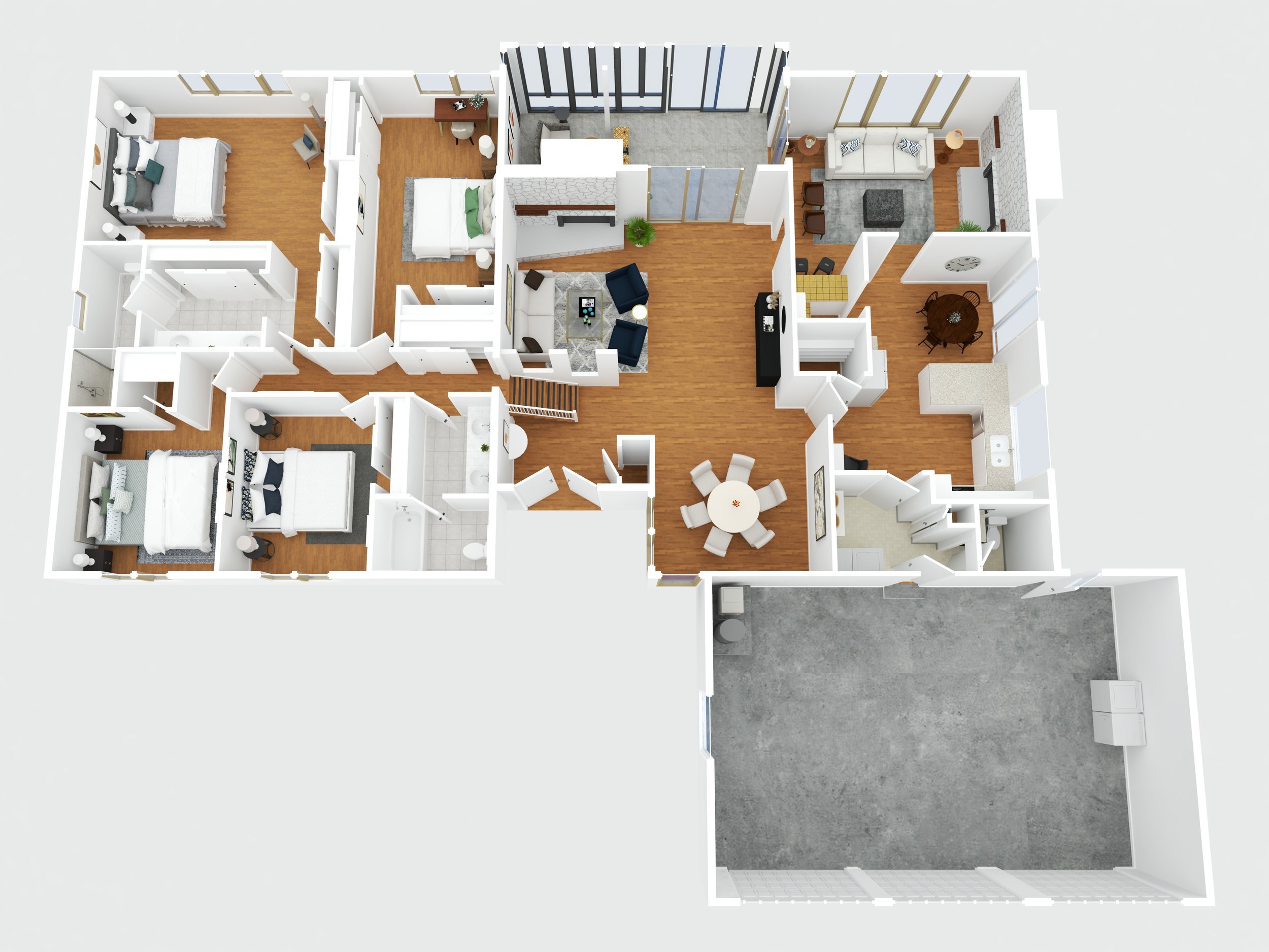 Expansive Three-Car Garage: Ample parking and storage space for convenience and organization