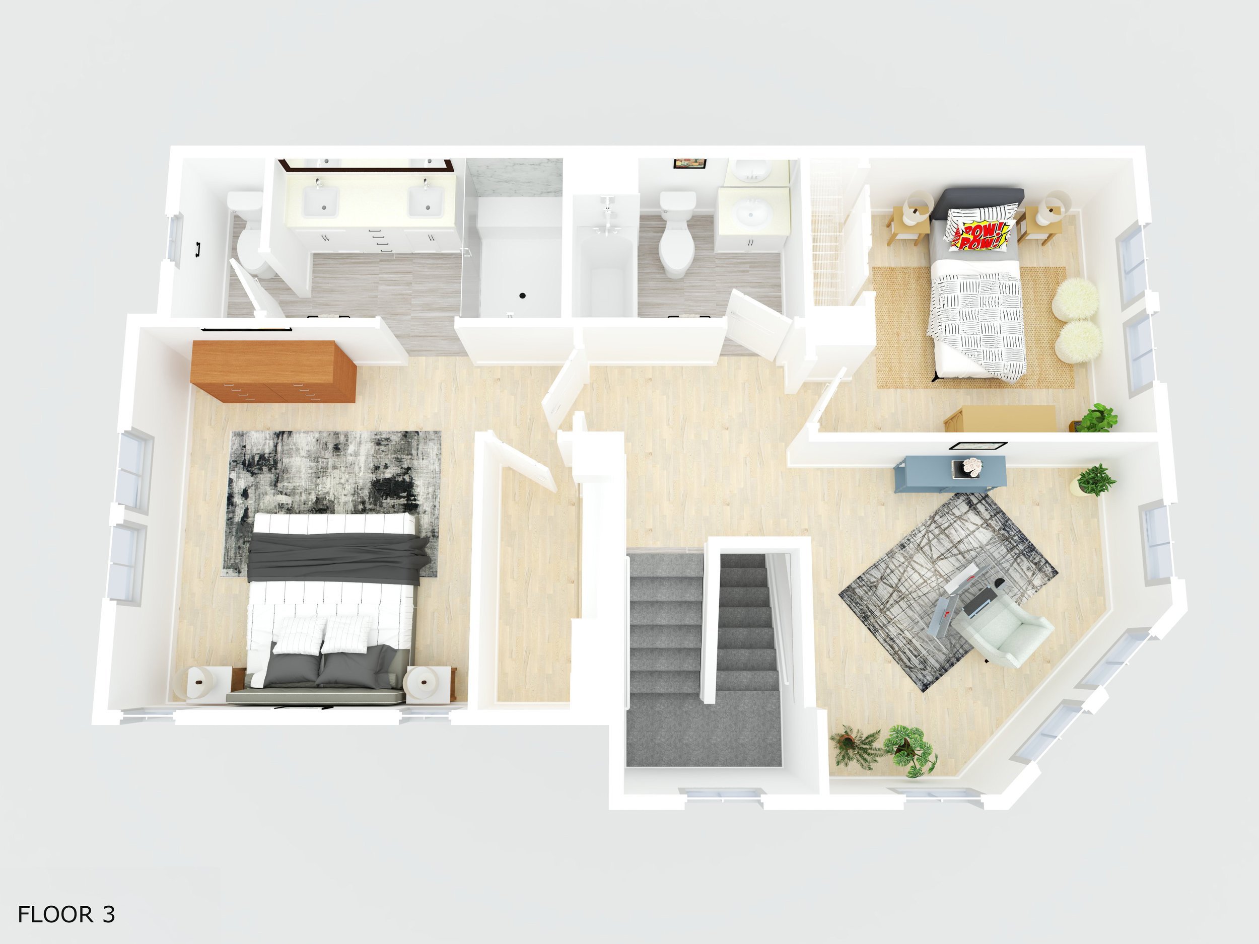 3 beds + optional 4th bed/loft