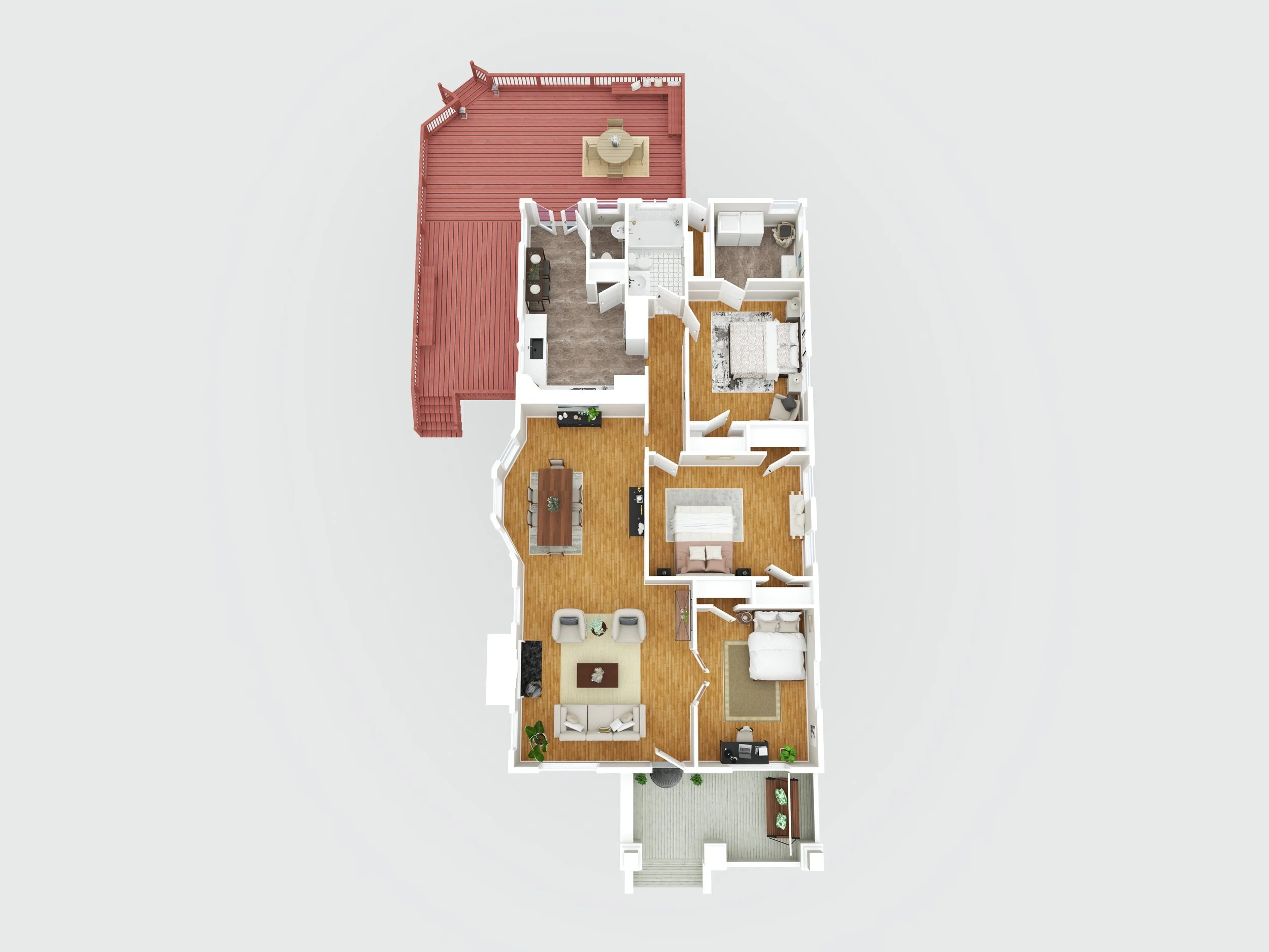 High ceilings, hardwood floors, and an updated kitchen with pantry and a large nook that opens to a beautiful deck