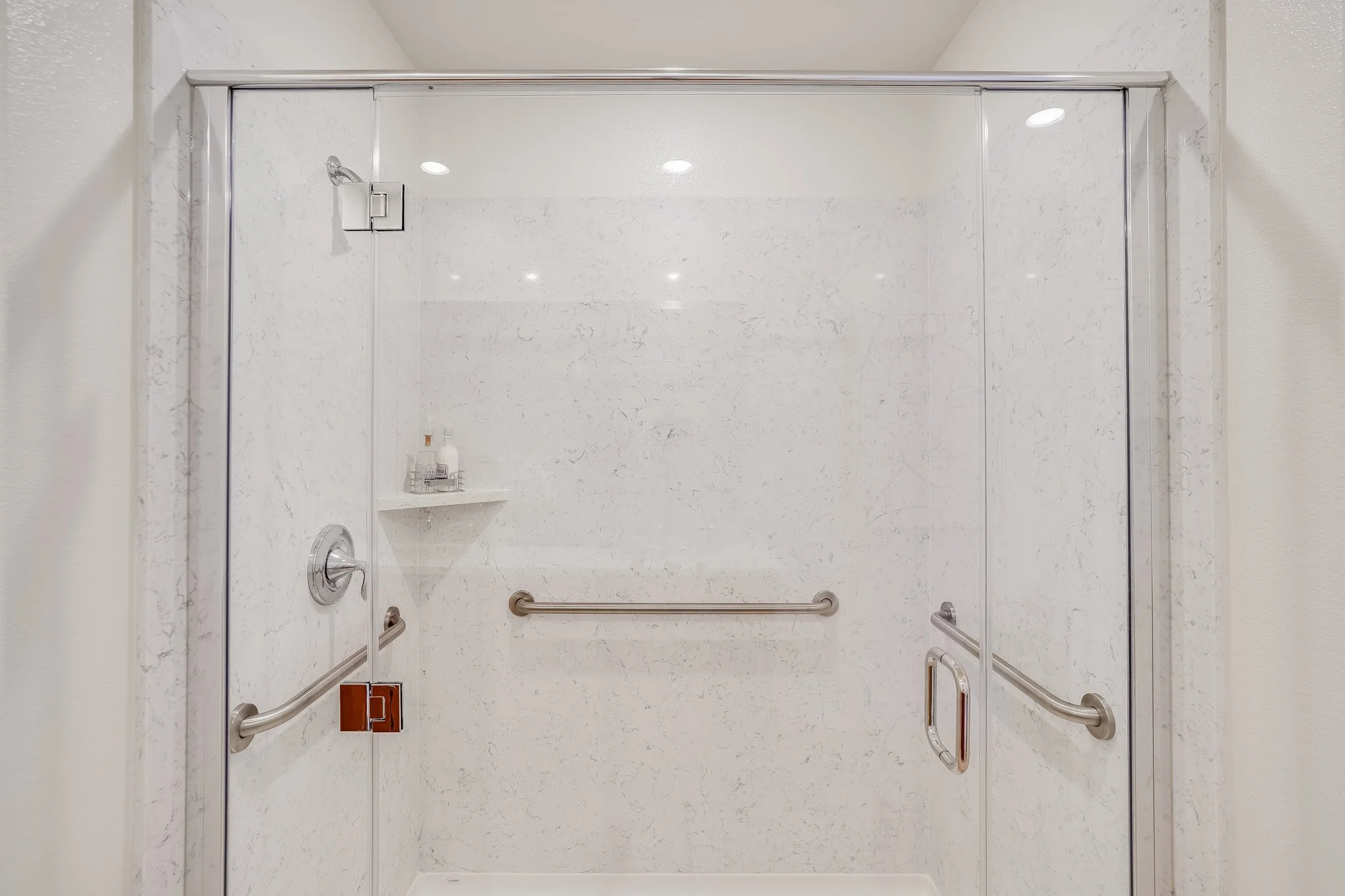 The elevator and bathroom railings make this unit handicap accessible.