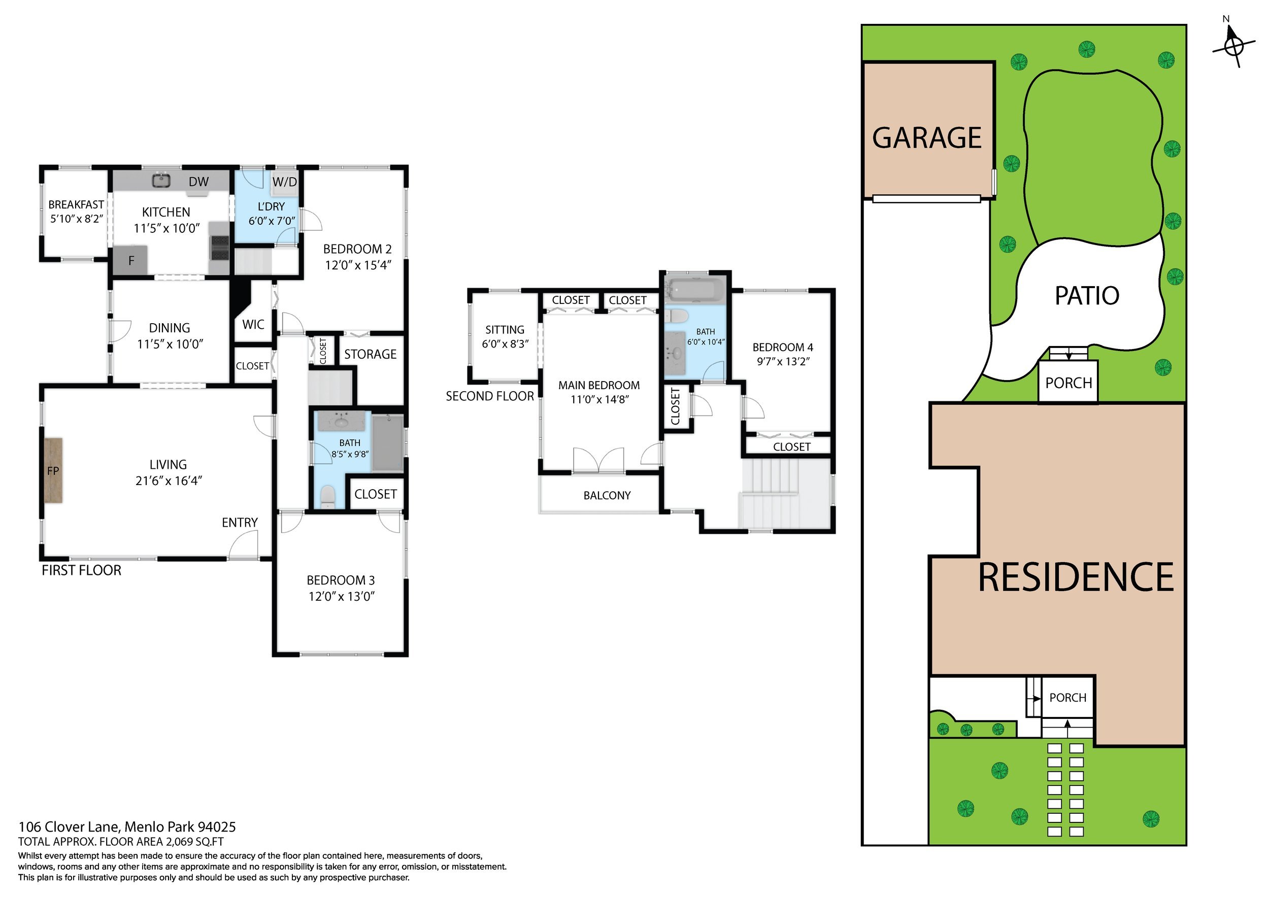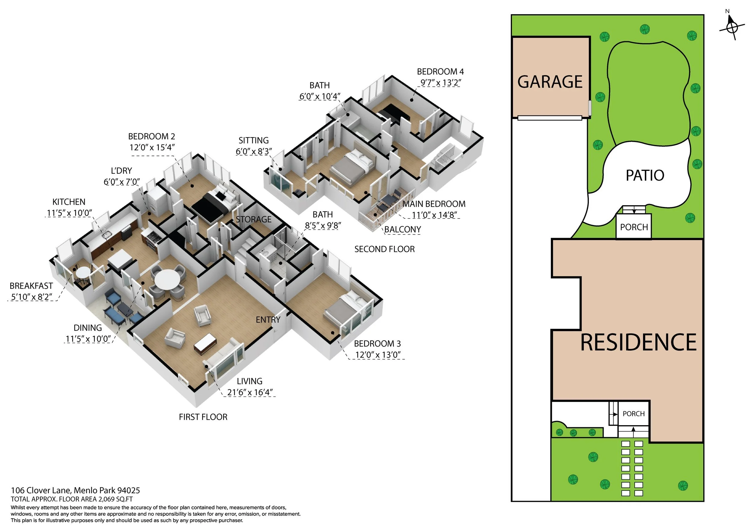 2-story floor plan includes 4 bedrooms and 2 bathrooms