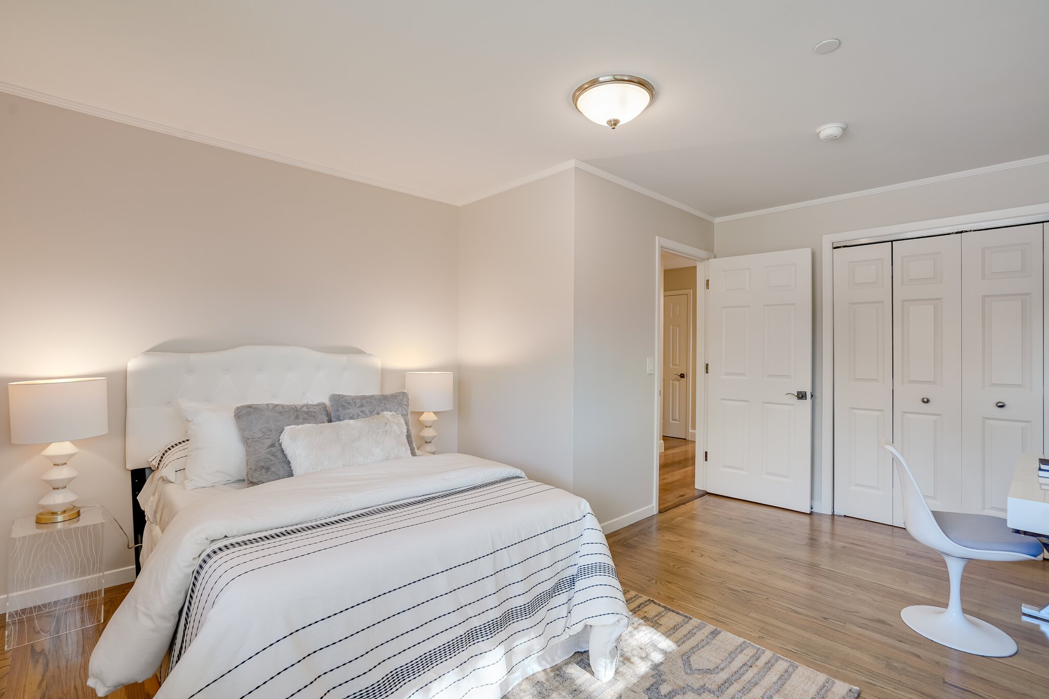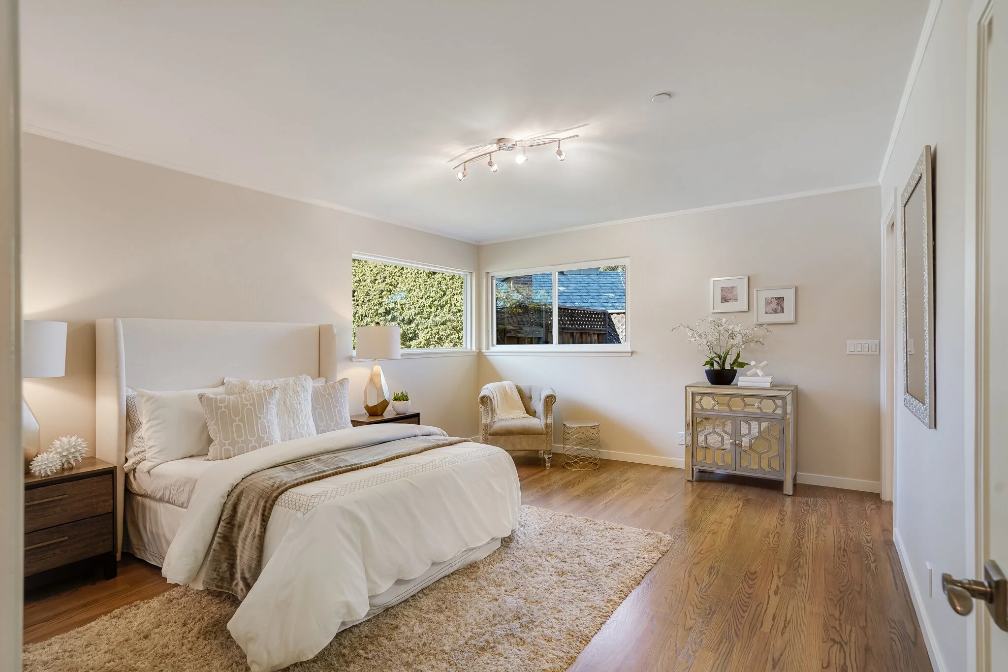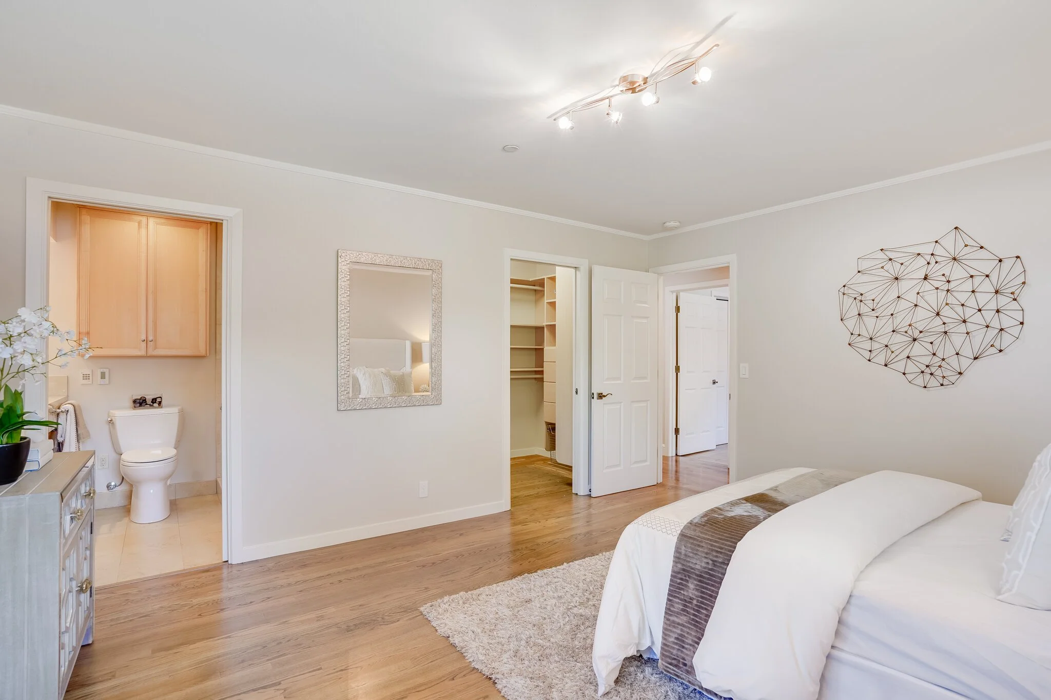 Additional en-suite bedroom offers walk-in closet by California Closets and partial cedar floors