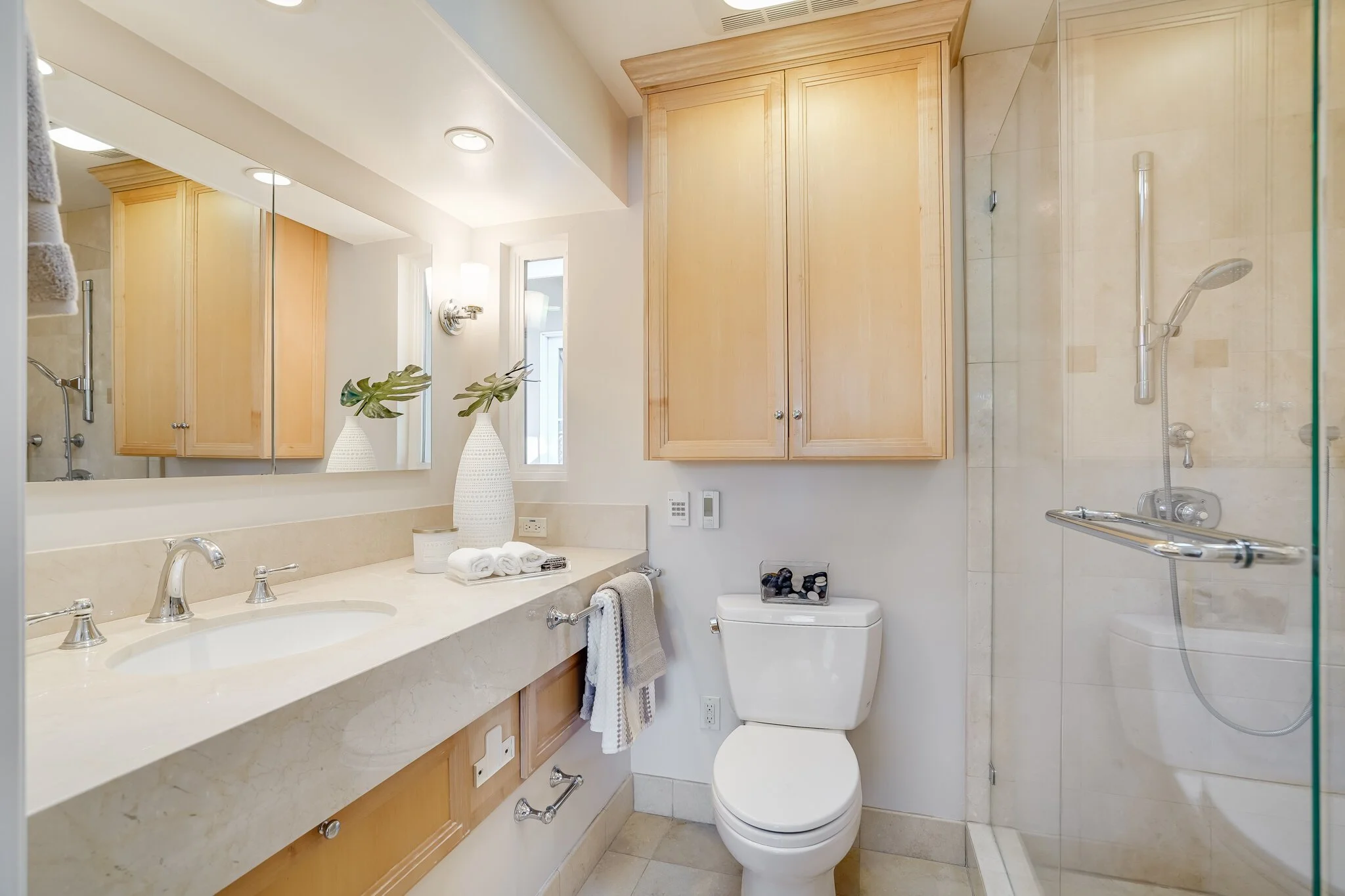 Radiant floors in three of four bathrooms