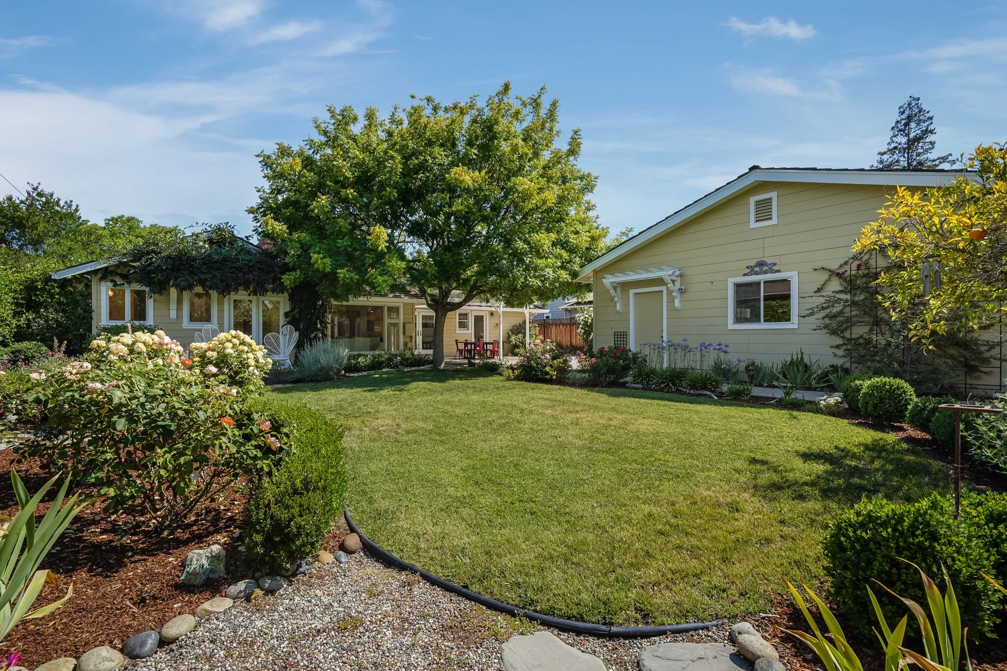 Sunny home with large, manicured front yard on a quiet street in charming Campbell area