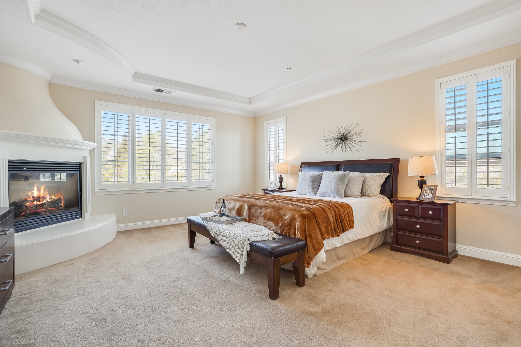 Enjoy a fireplace and built-in entertainment center