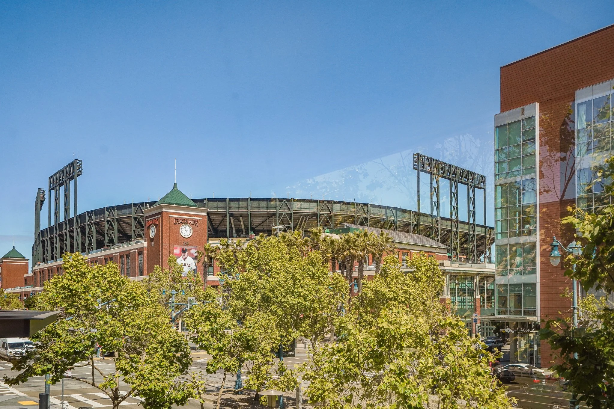 One bedroom / 1 bath + den corner unit featuring postcard views of Oracle Park