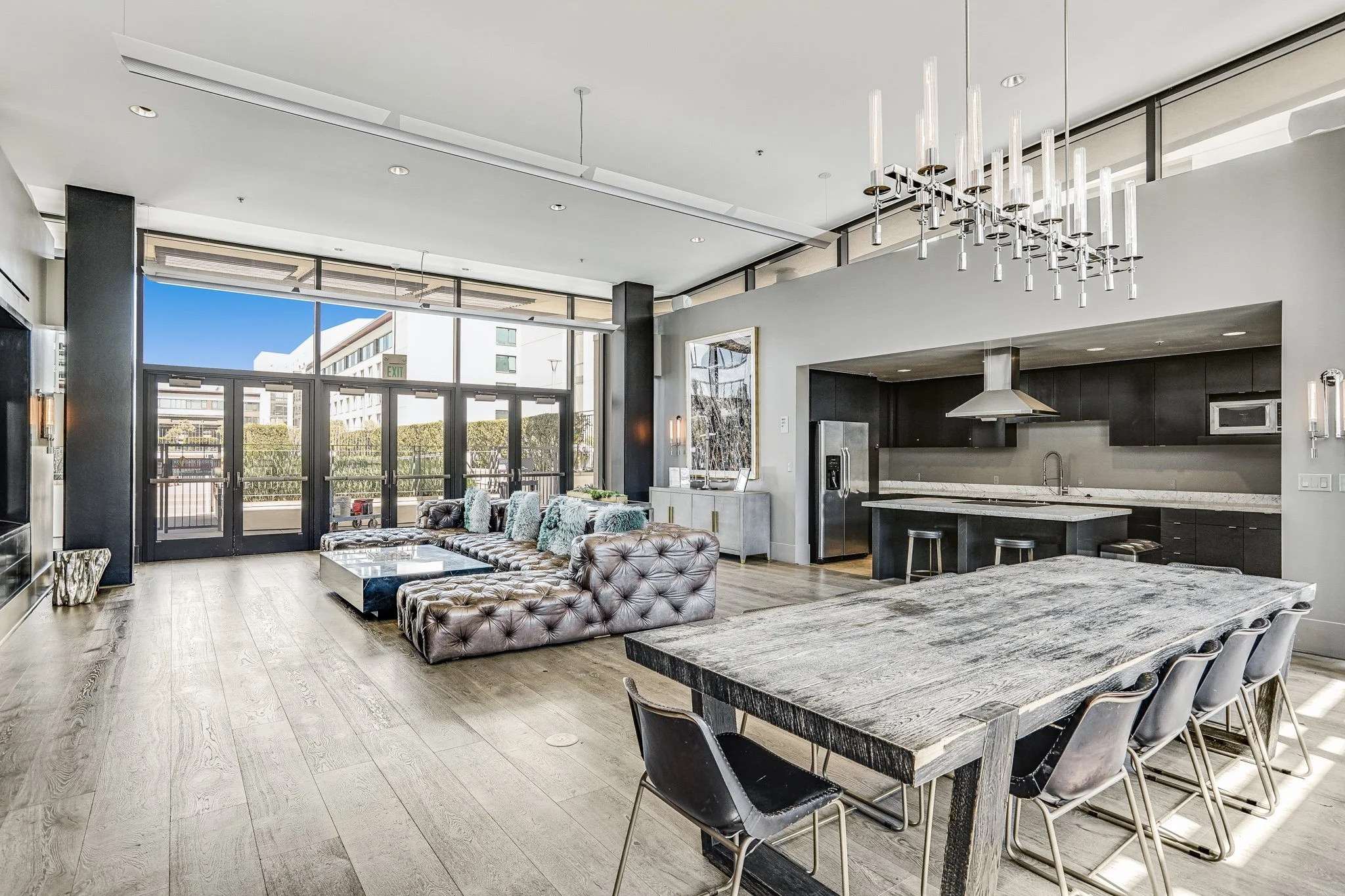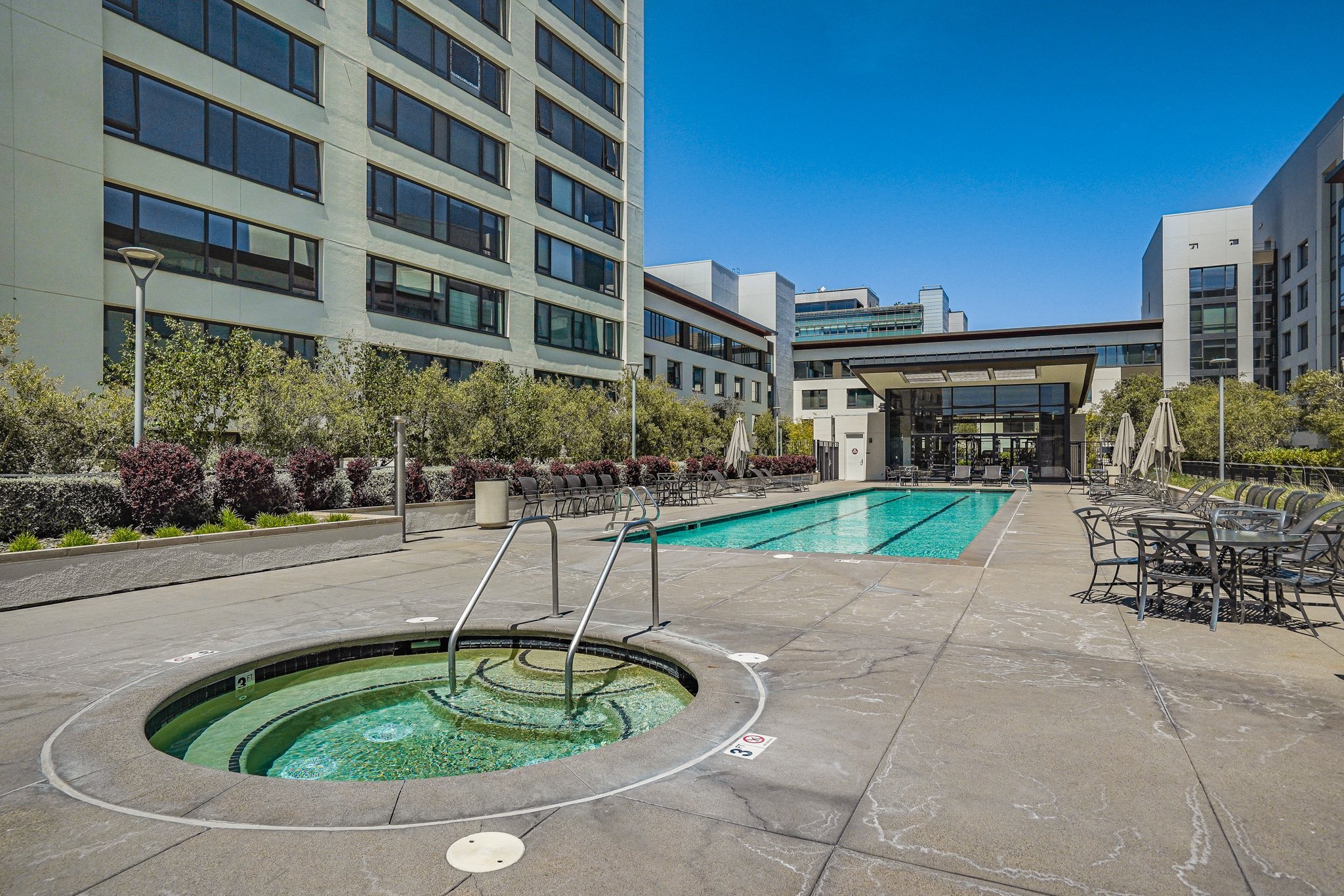 Residential community amenities include lobby concierge, outdoor pool, hot tub, gym/sauna, dog park, clubhouse, and business center