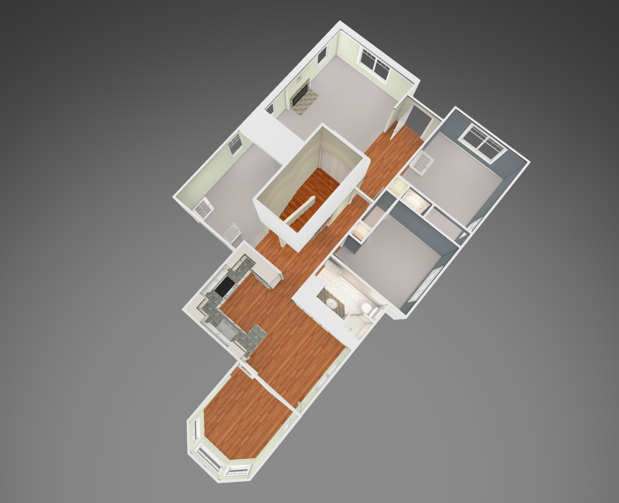 Two downstairs bedrooms, one which can be used as an office. Adjacent bathroom with shower and granite countertop vanity.