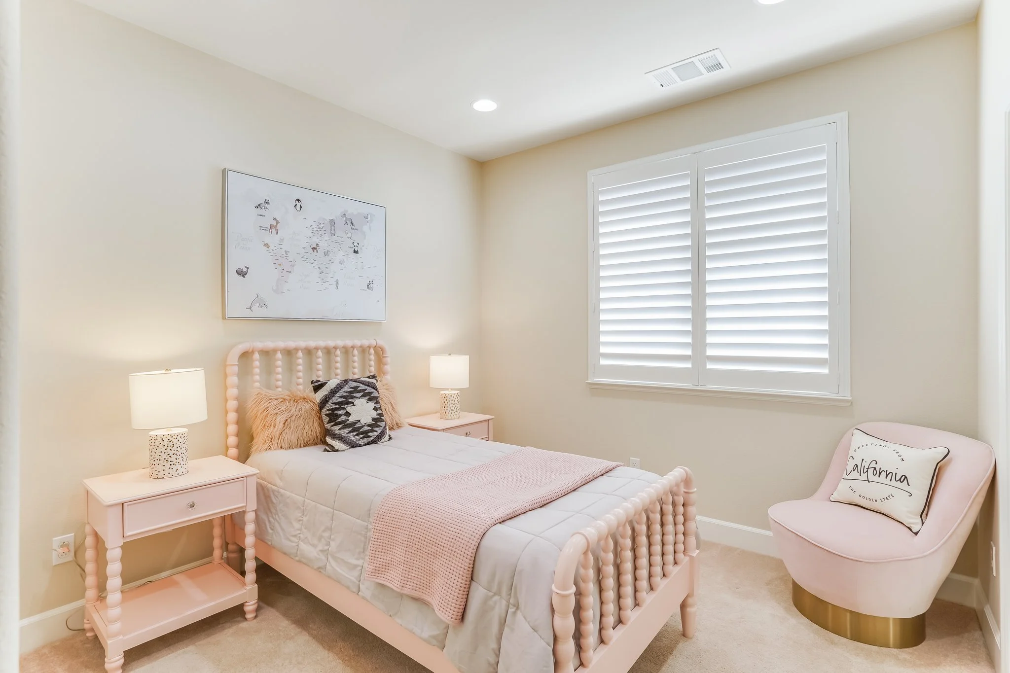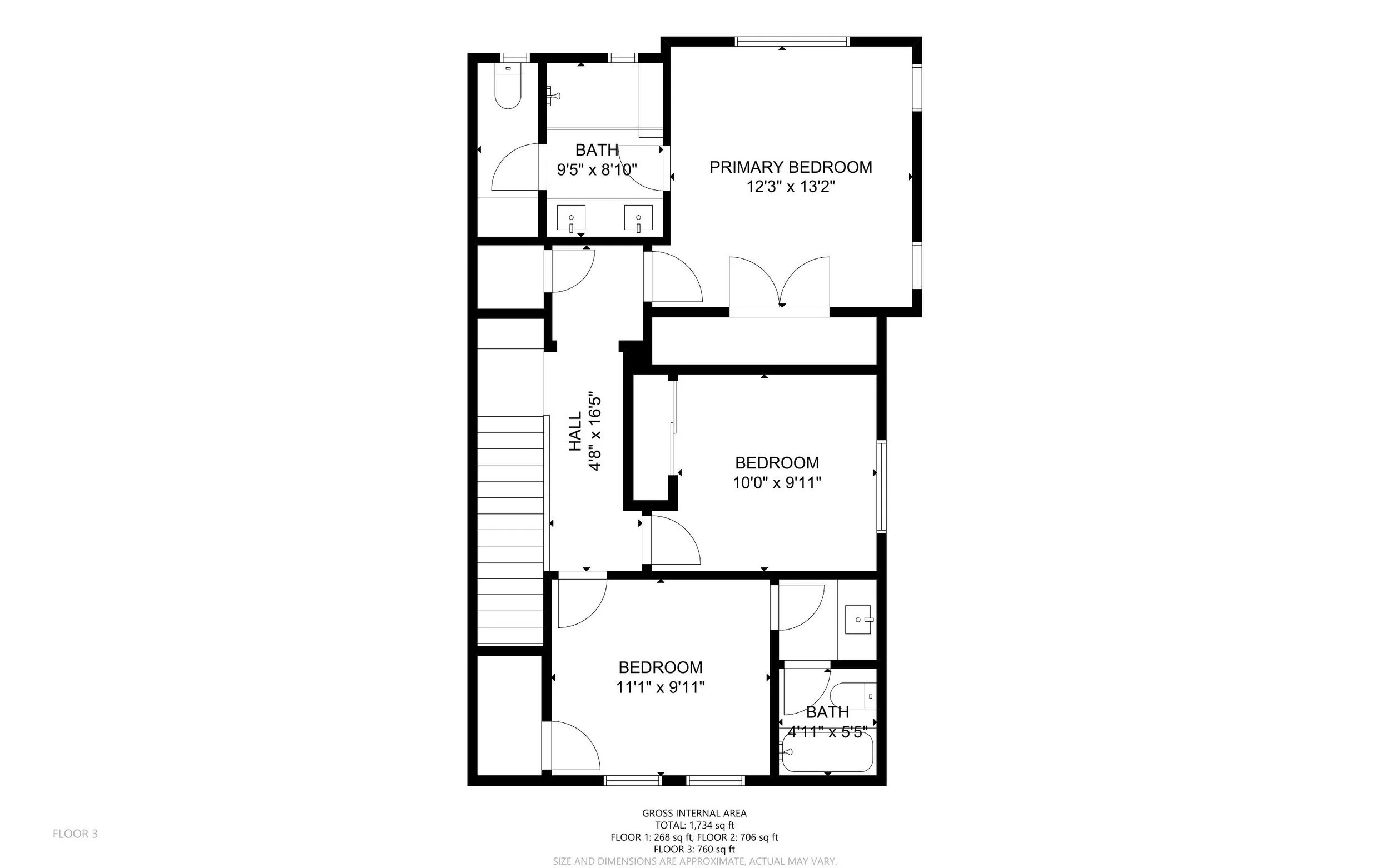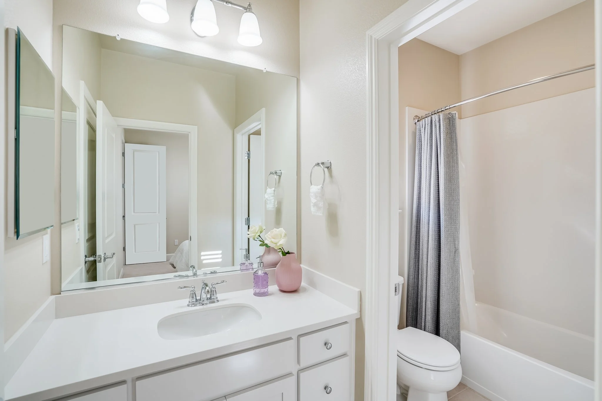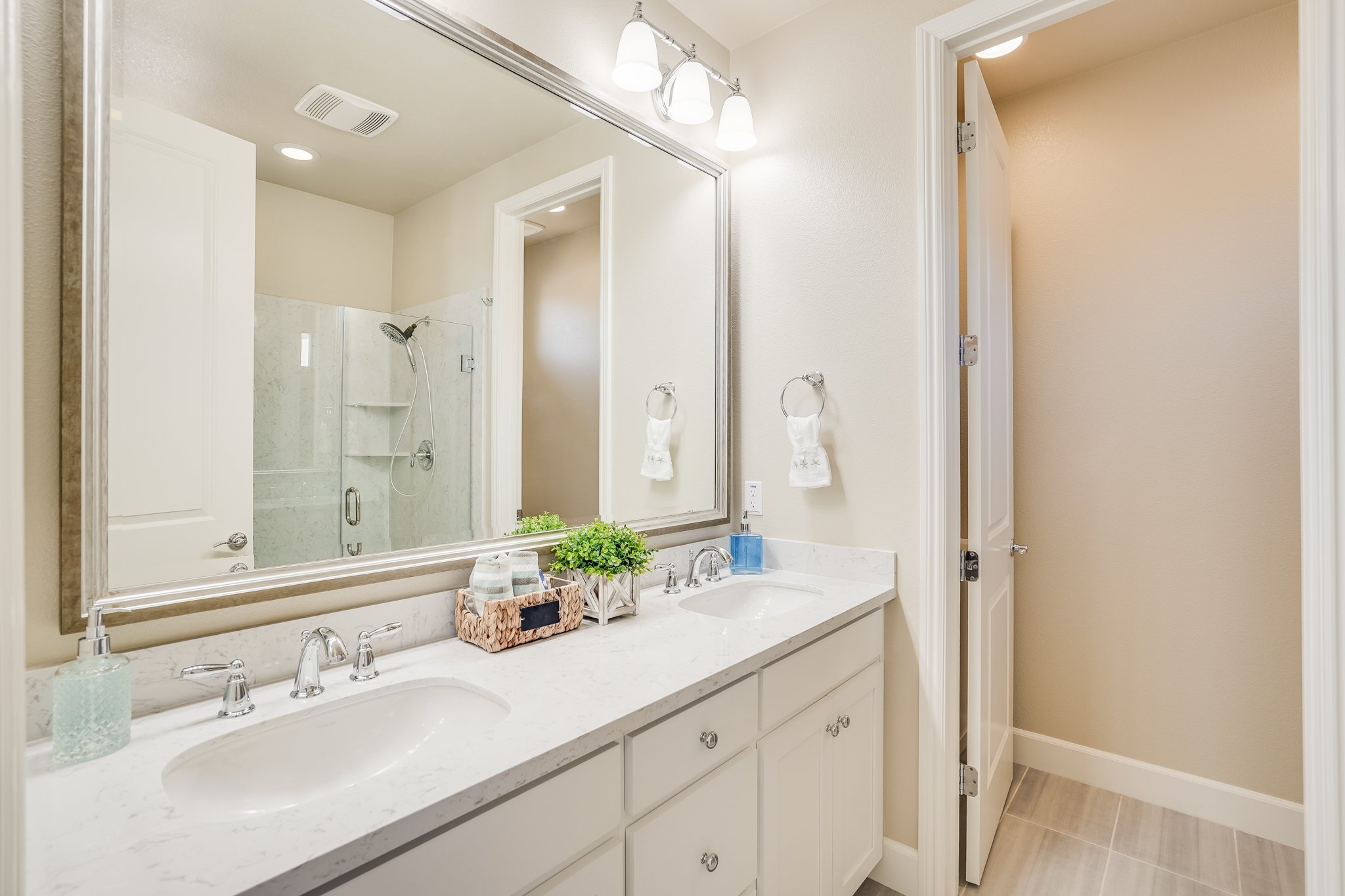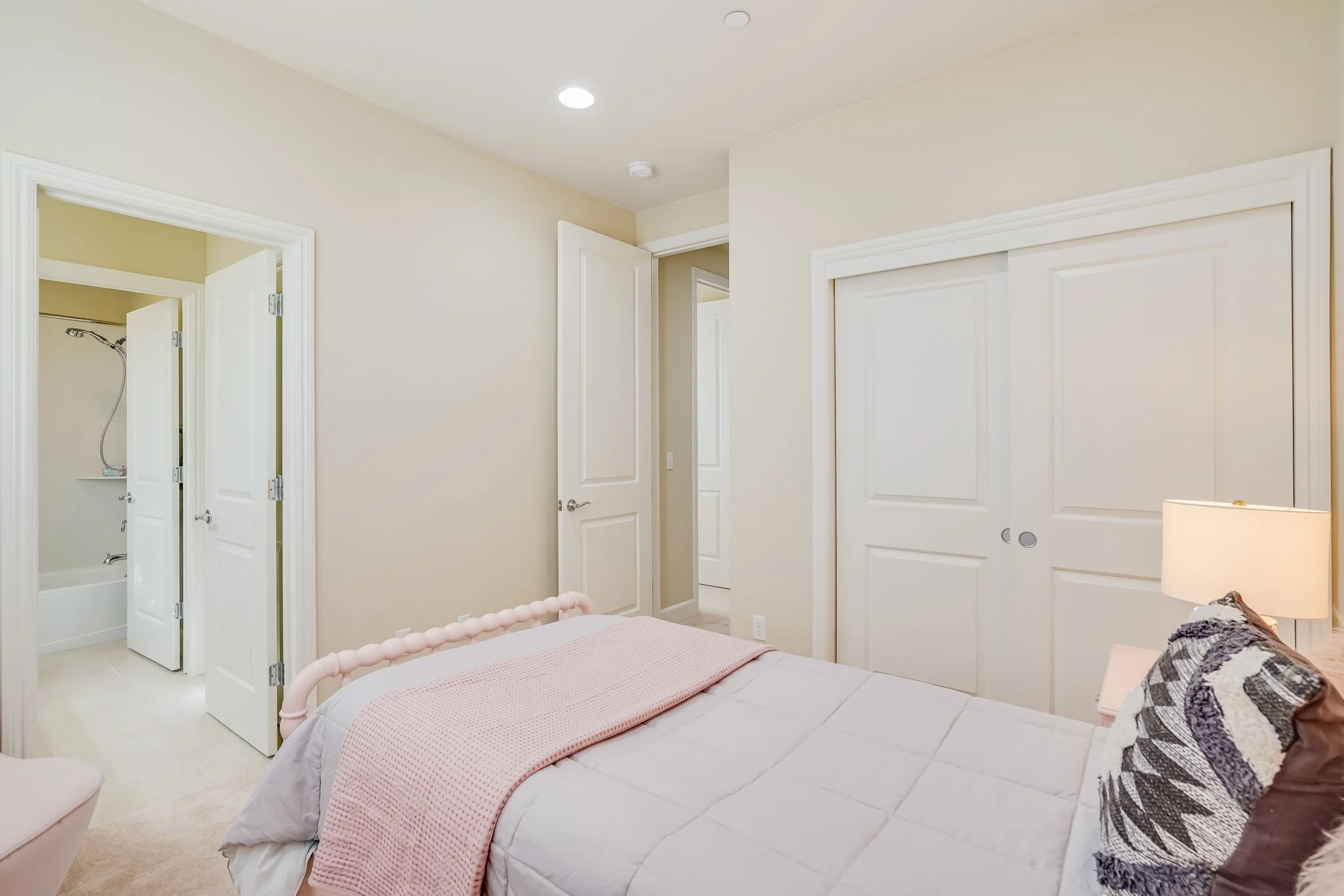 Two secondary third-floor bedrooms share a Jack and Jill bathroom