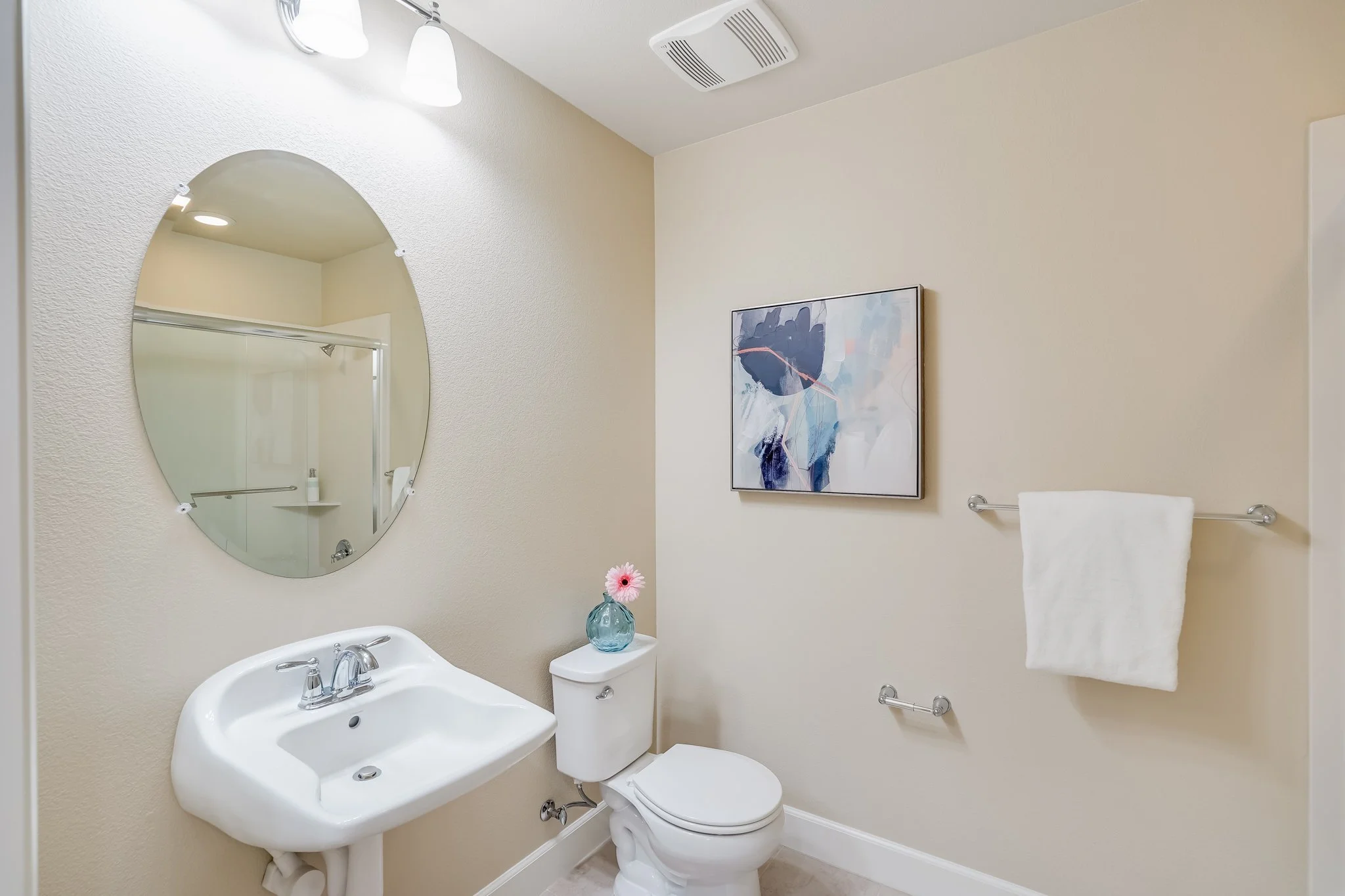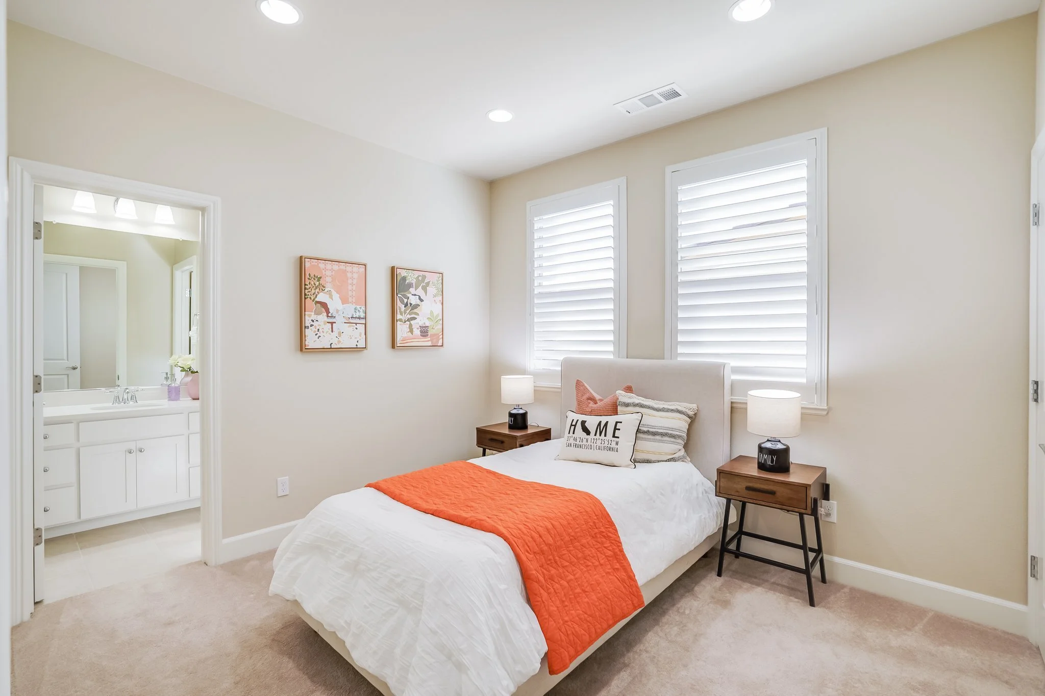 Main bedroom displays a luxury full bathroom