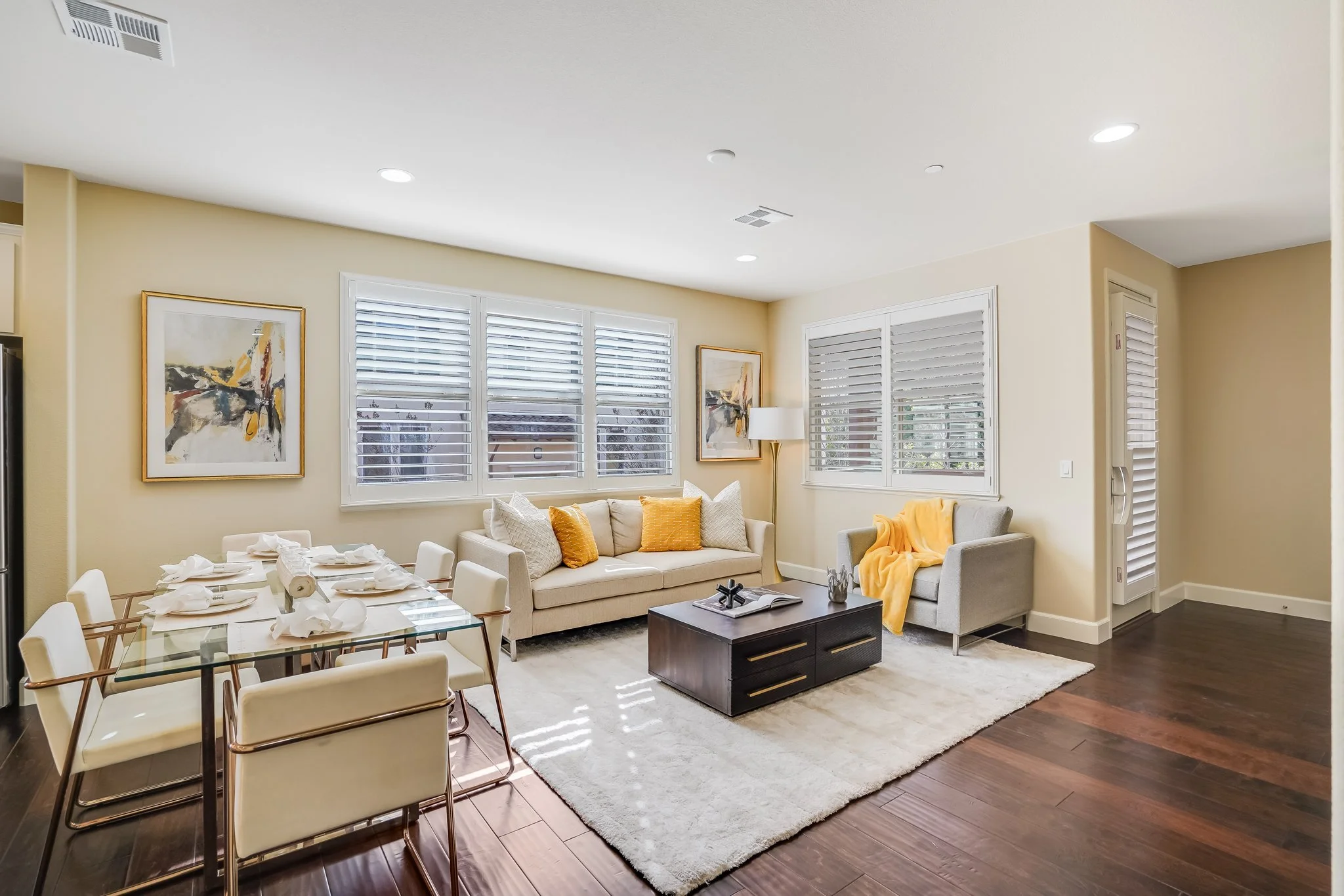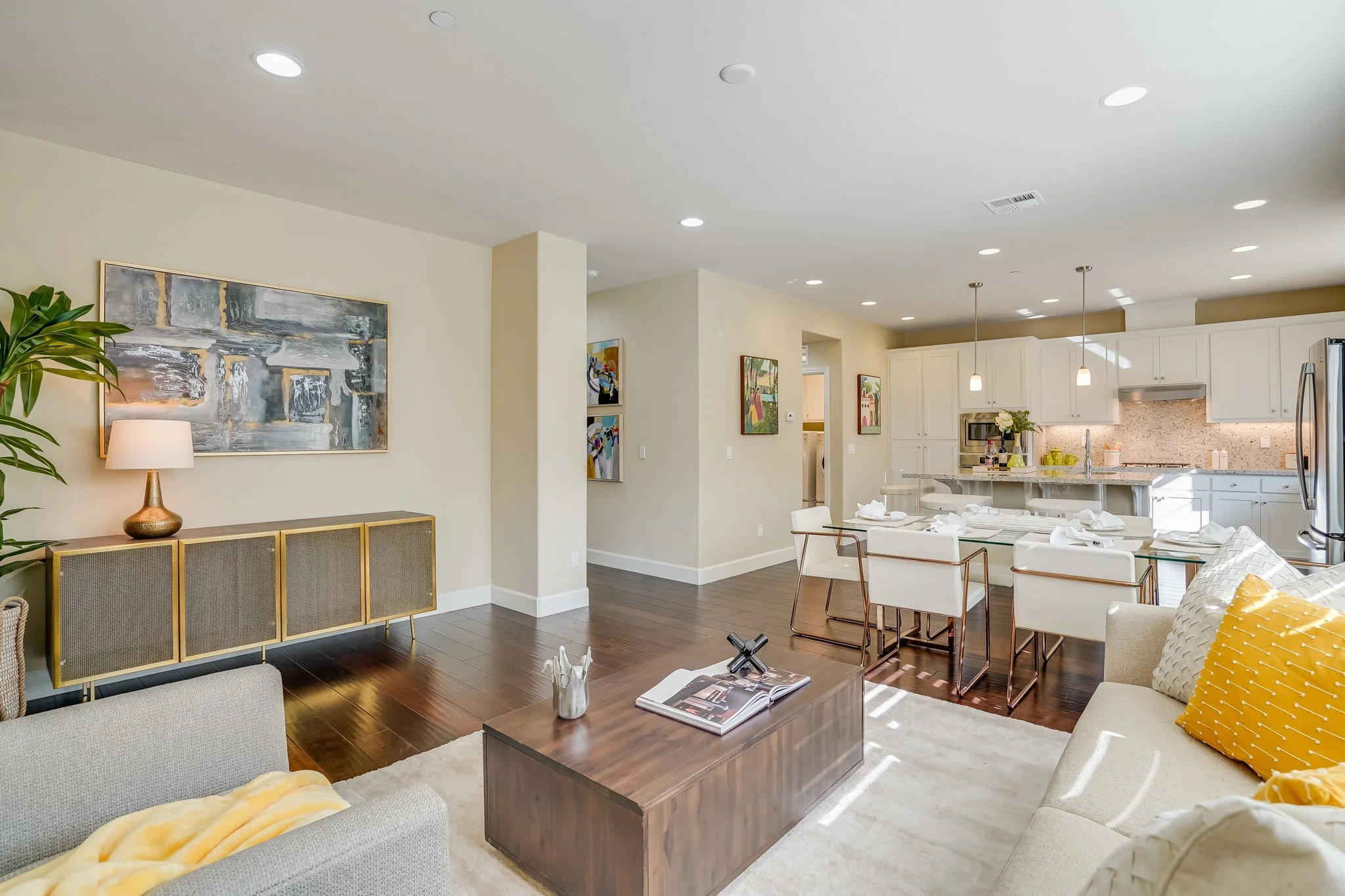 The living room is large and bright, with an open-plan concept