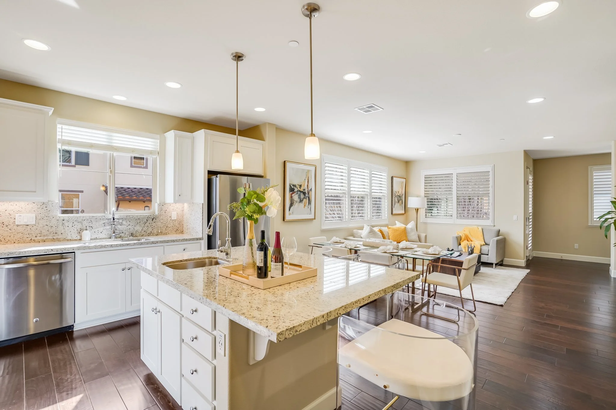 Additional amenities include separate laundry space and included appliances, ethernet wiring, fiber internet, and custom shutters