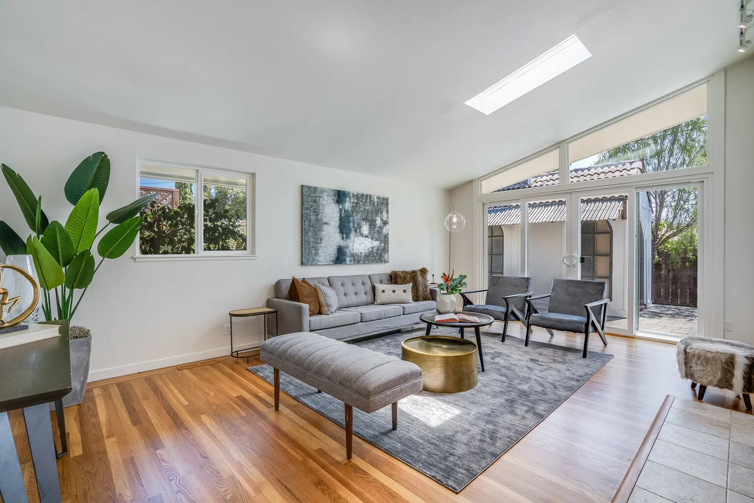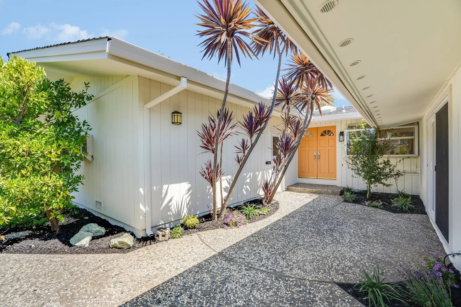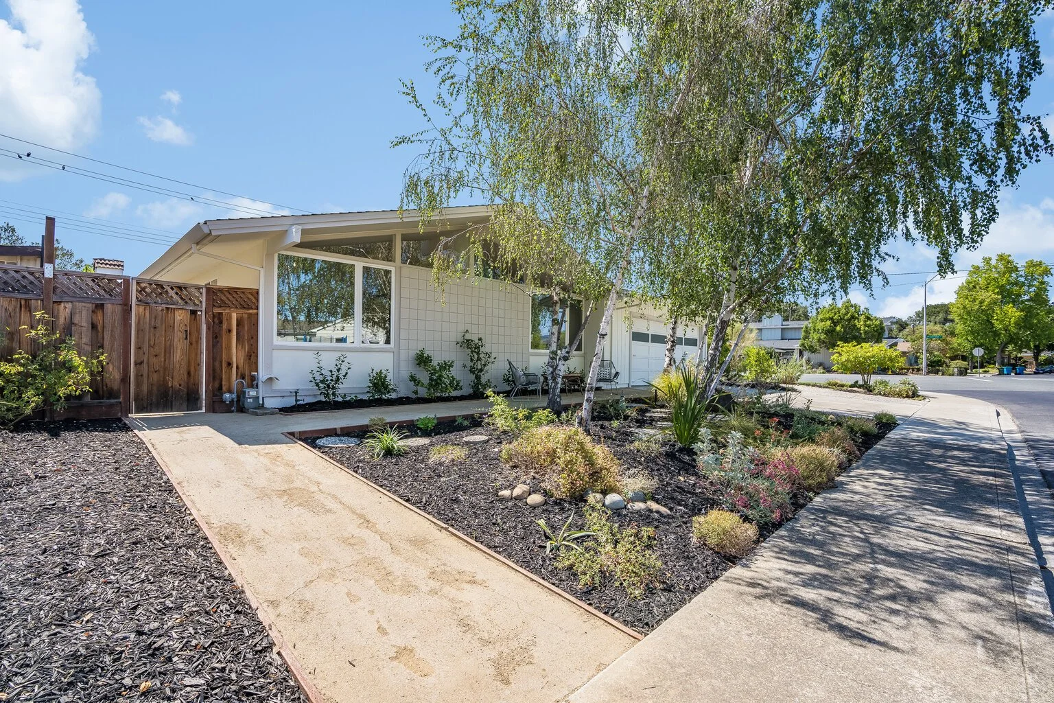 Charming front yard includes a gated courtyard with plenty of space for lounging and entertaining
