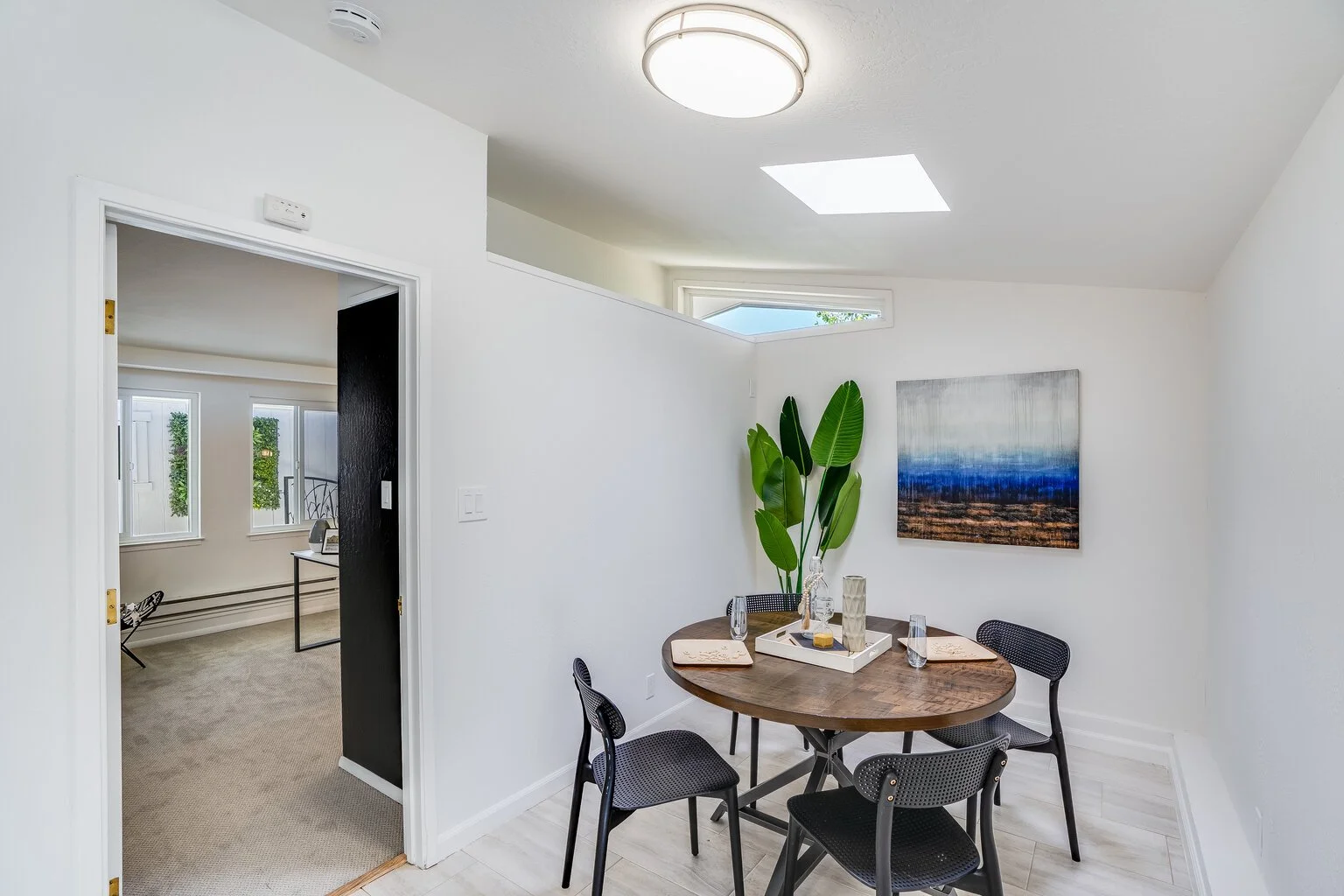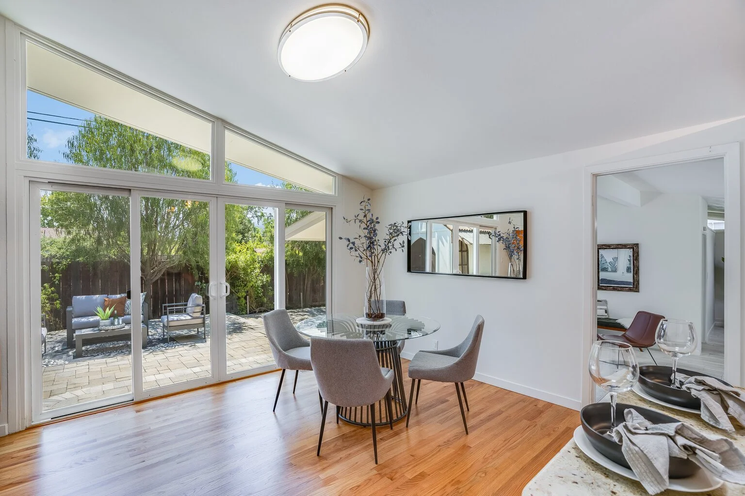 Dining and living room enjoy stunning view of the backyard