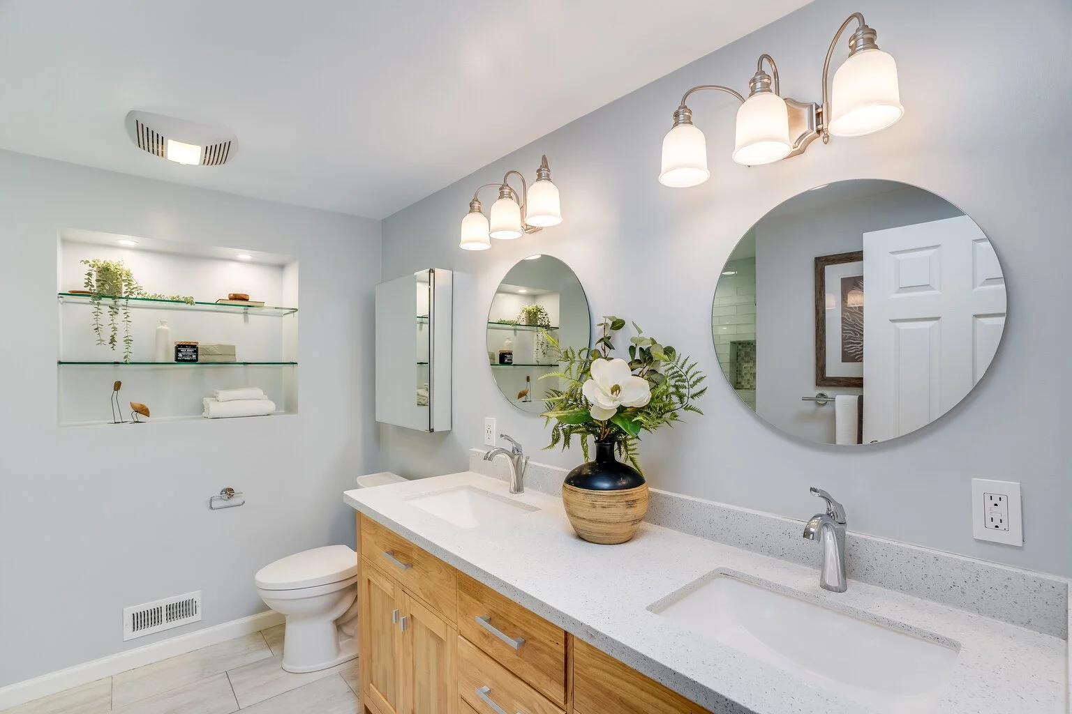 Two fully remodeled baths embody a spa-like environment