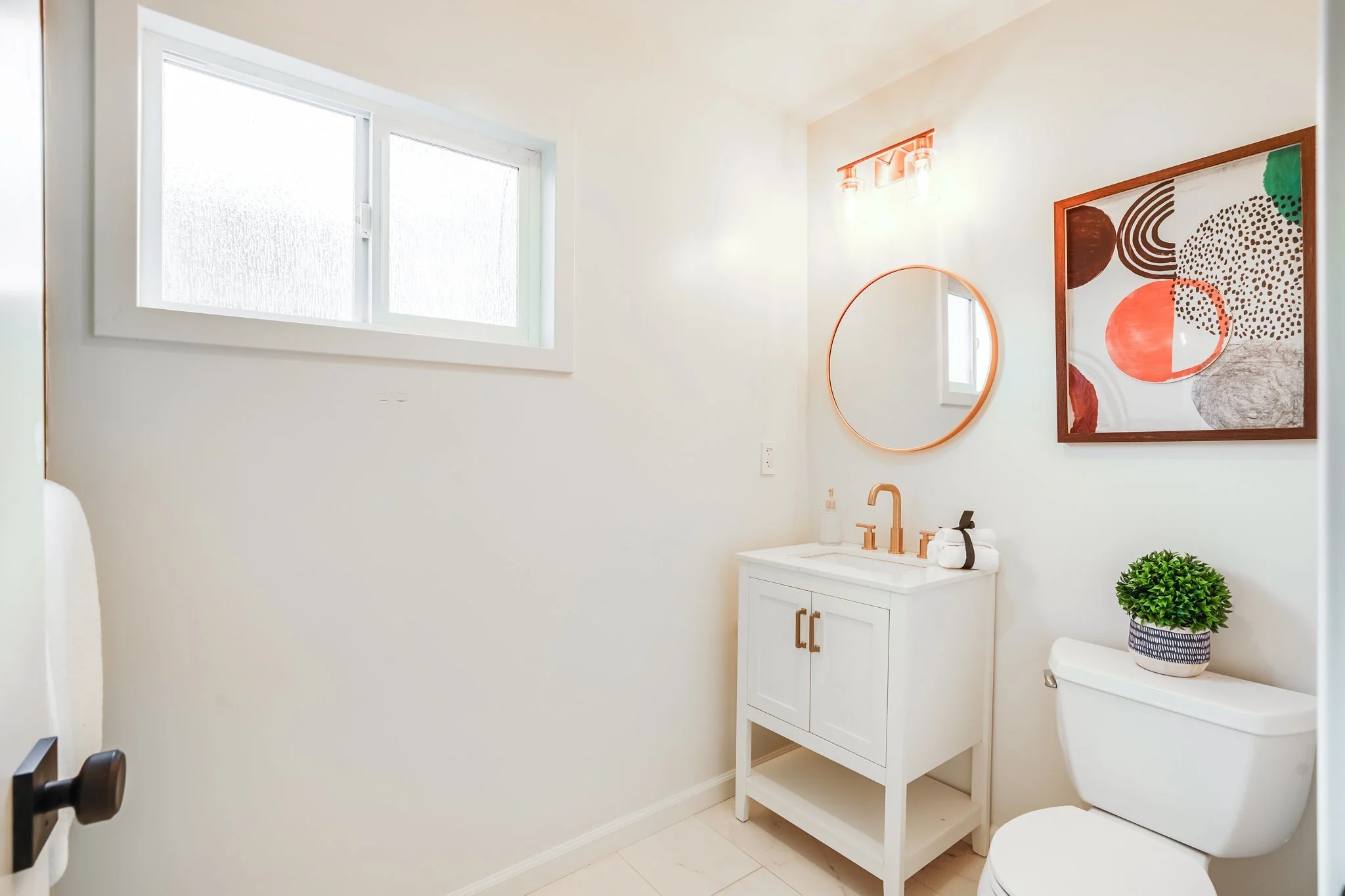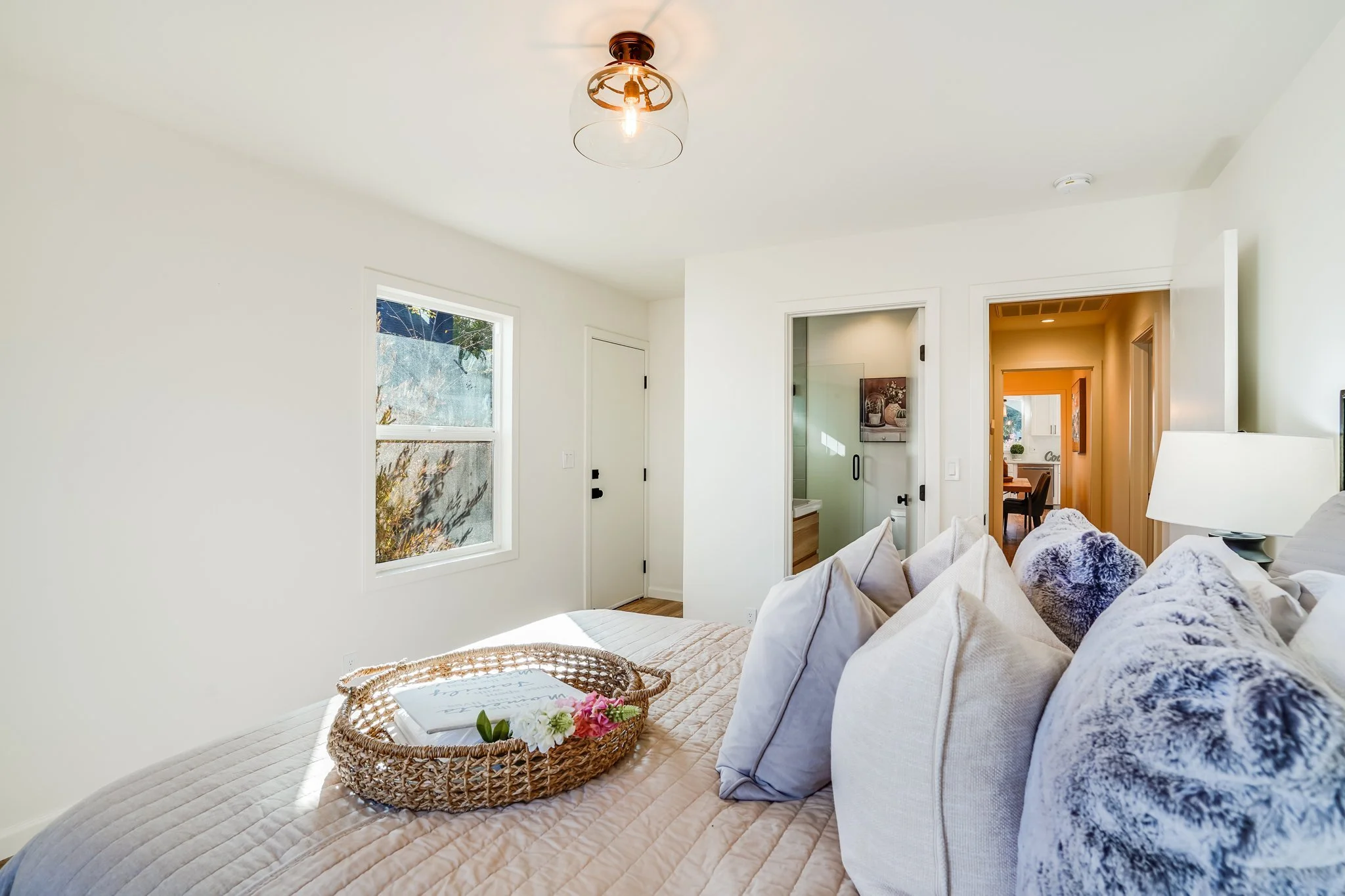 The primary bedroom includes private backyard access and a full en-suite bathroom.
