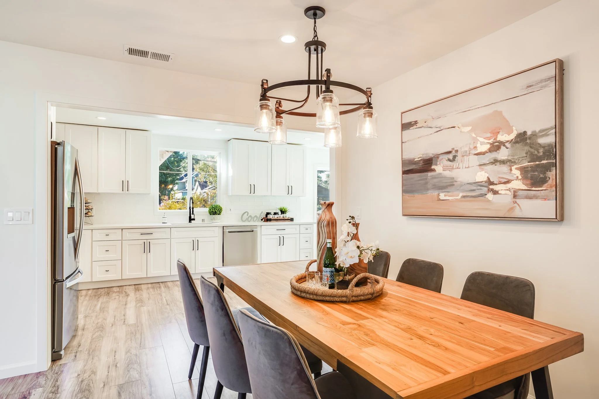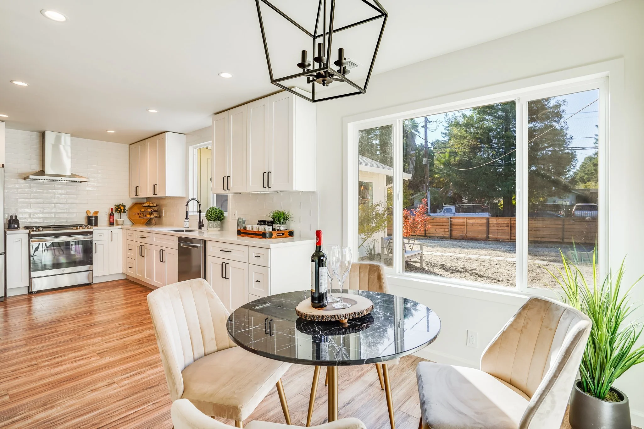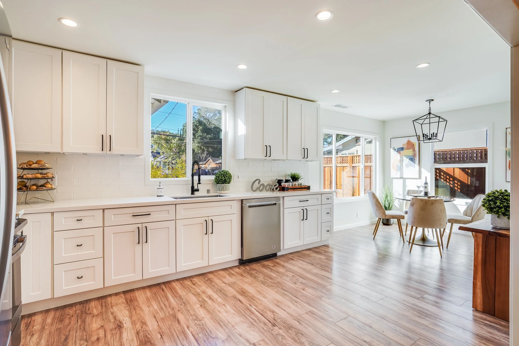 An airy dining nook sits just off the kitchen.