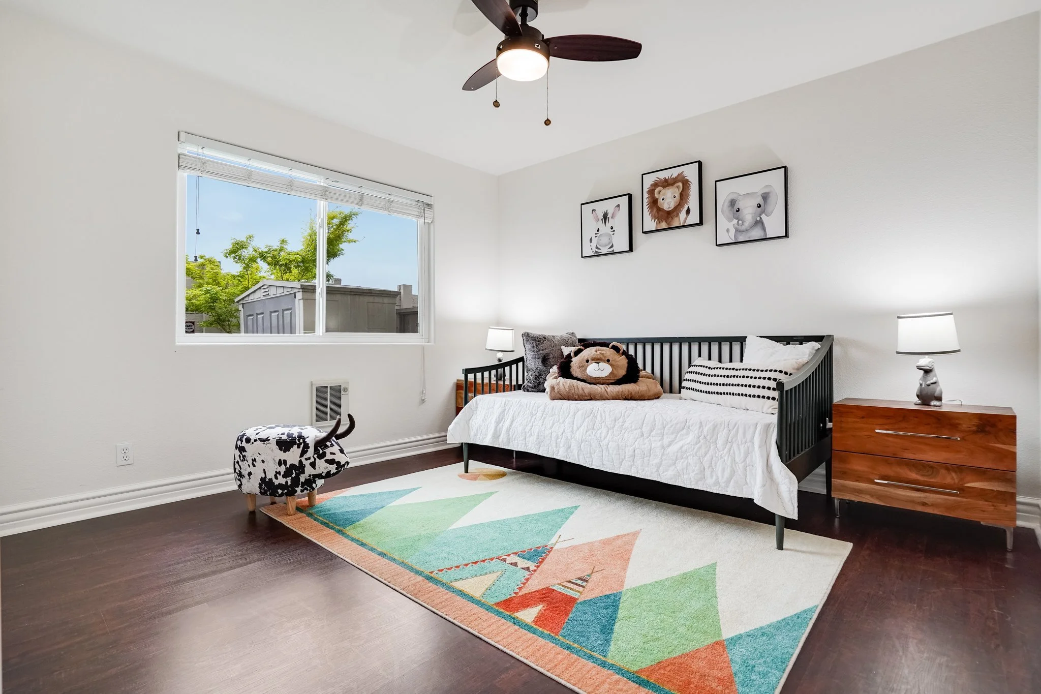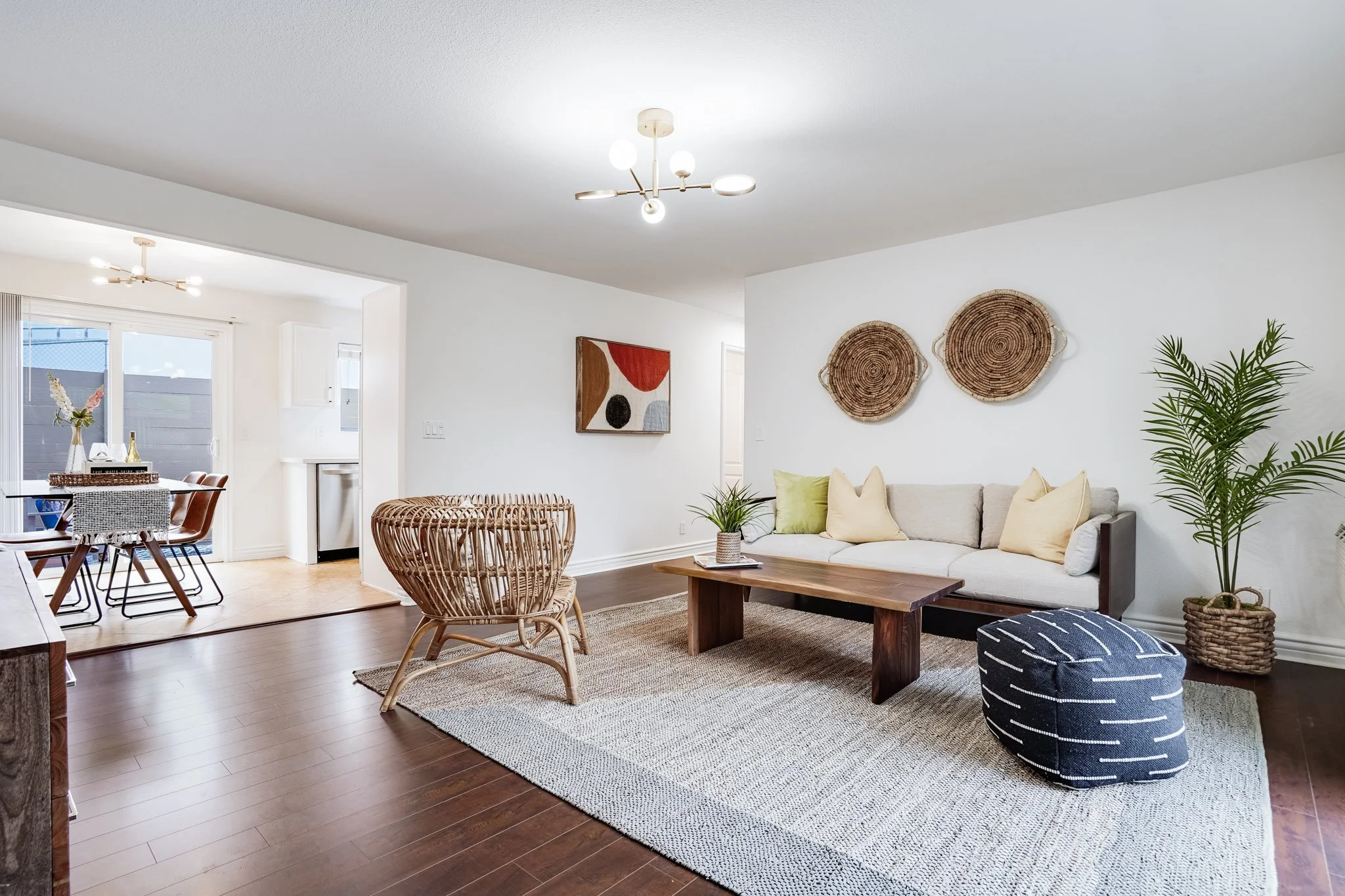 Enter onto a bright living room soaked in natural light