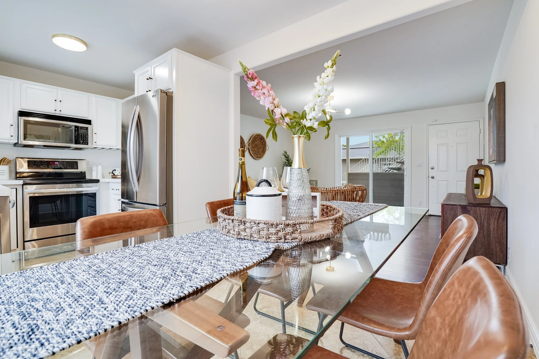 Beyond, the kitchen displays updated appliances, maple cabinets, and new quartz counters, with a cozy dining nook