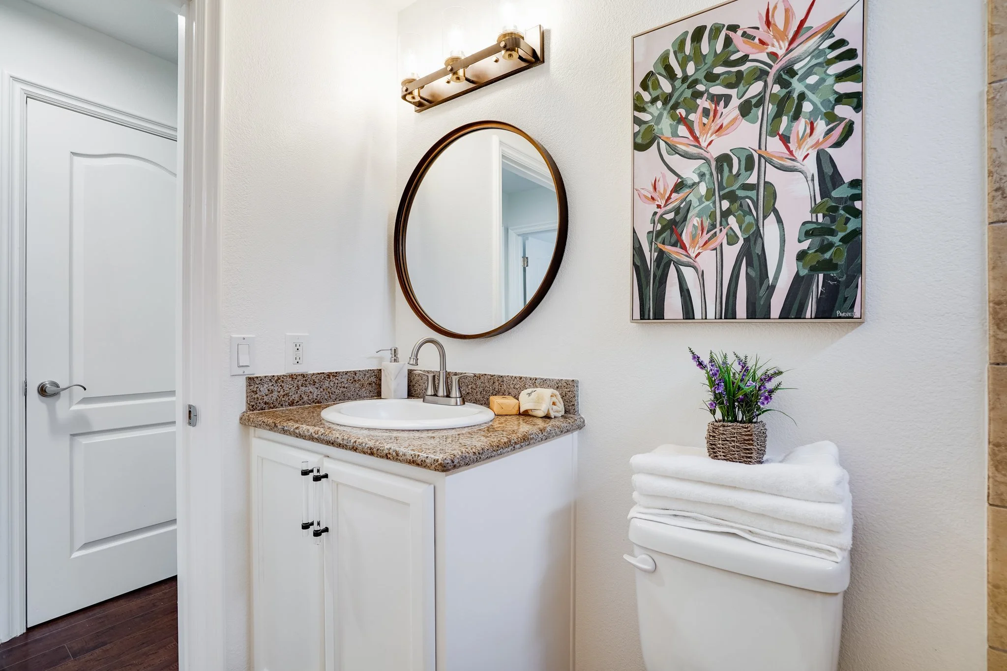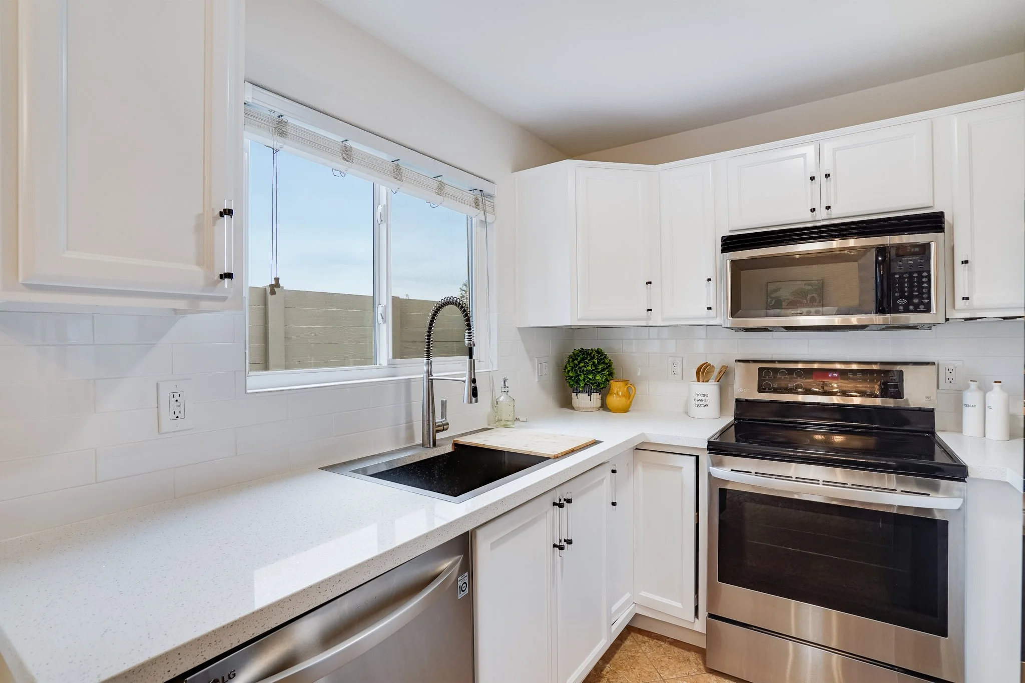 Recent updates include elegant light fixtures, refreshed paint, and new sink & faucet units throughout the home