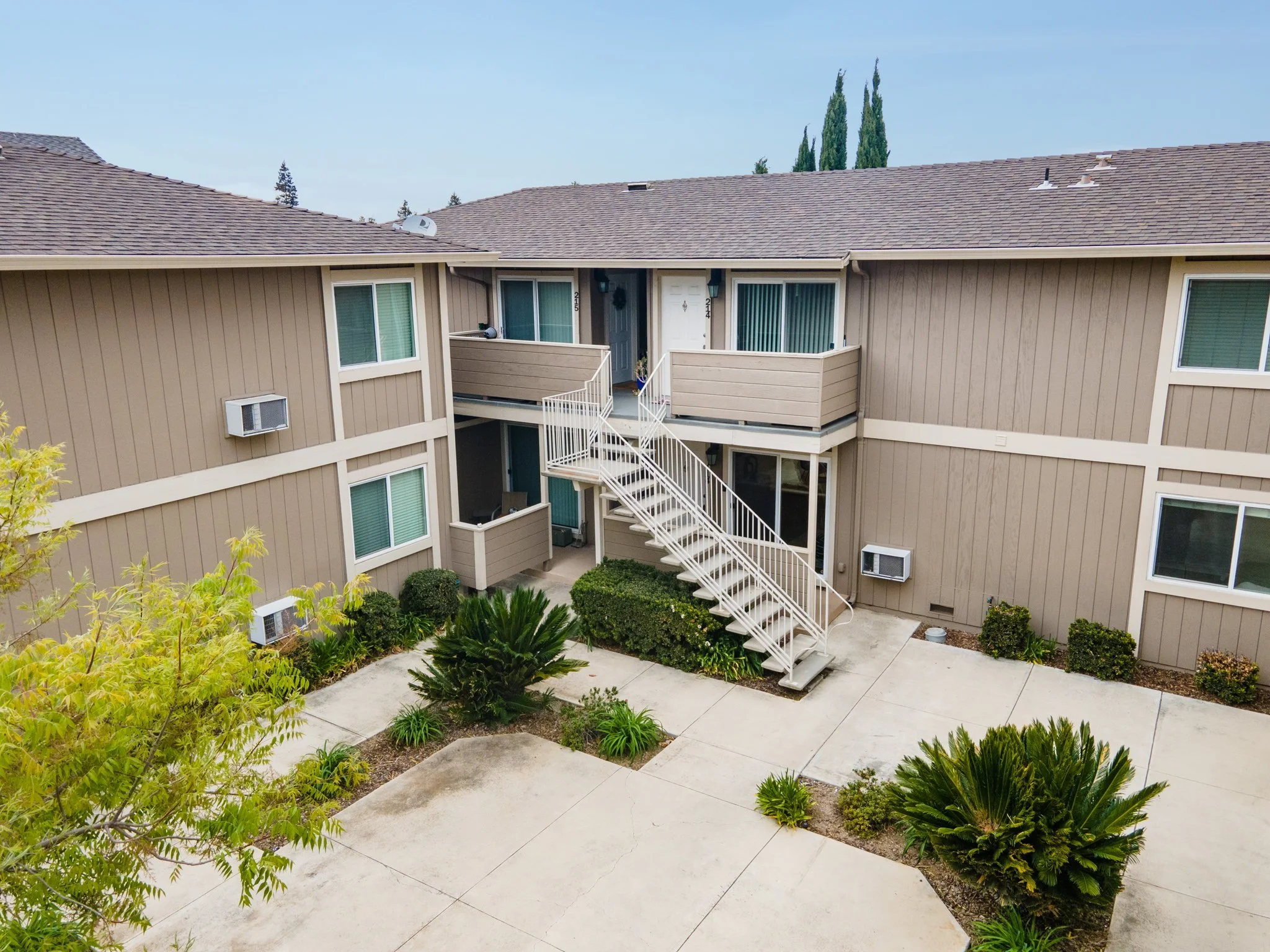 The entry displays a semi-private front courtyard offering extra outdoor leisure space