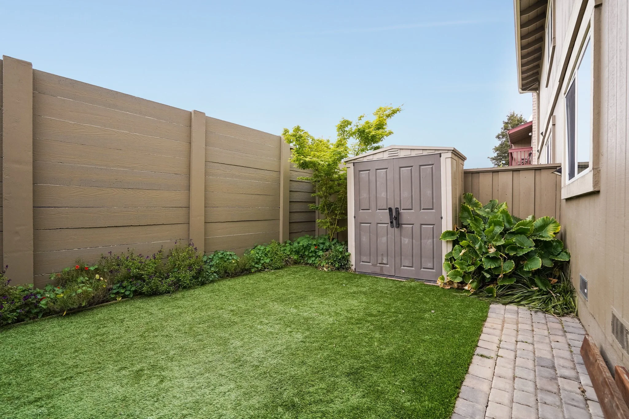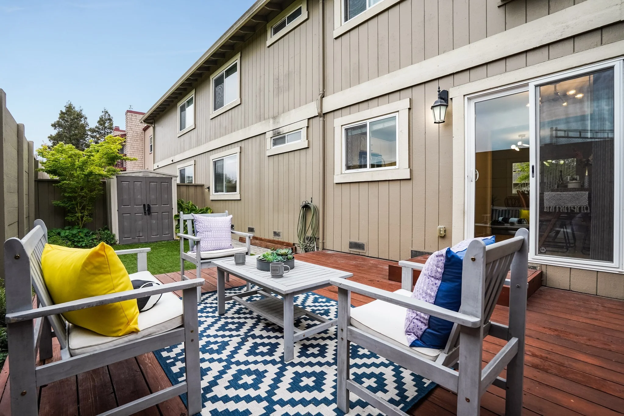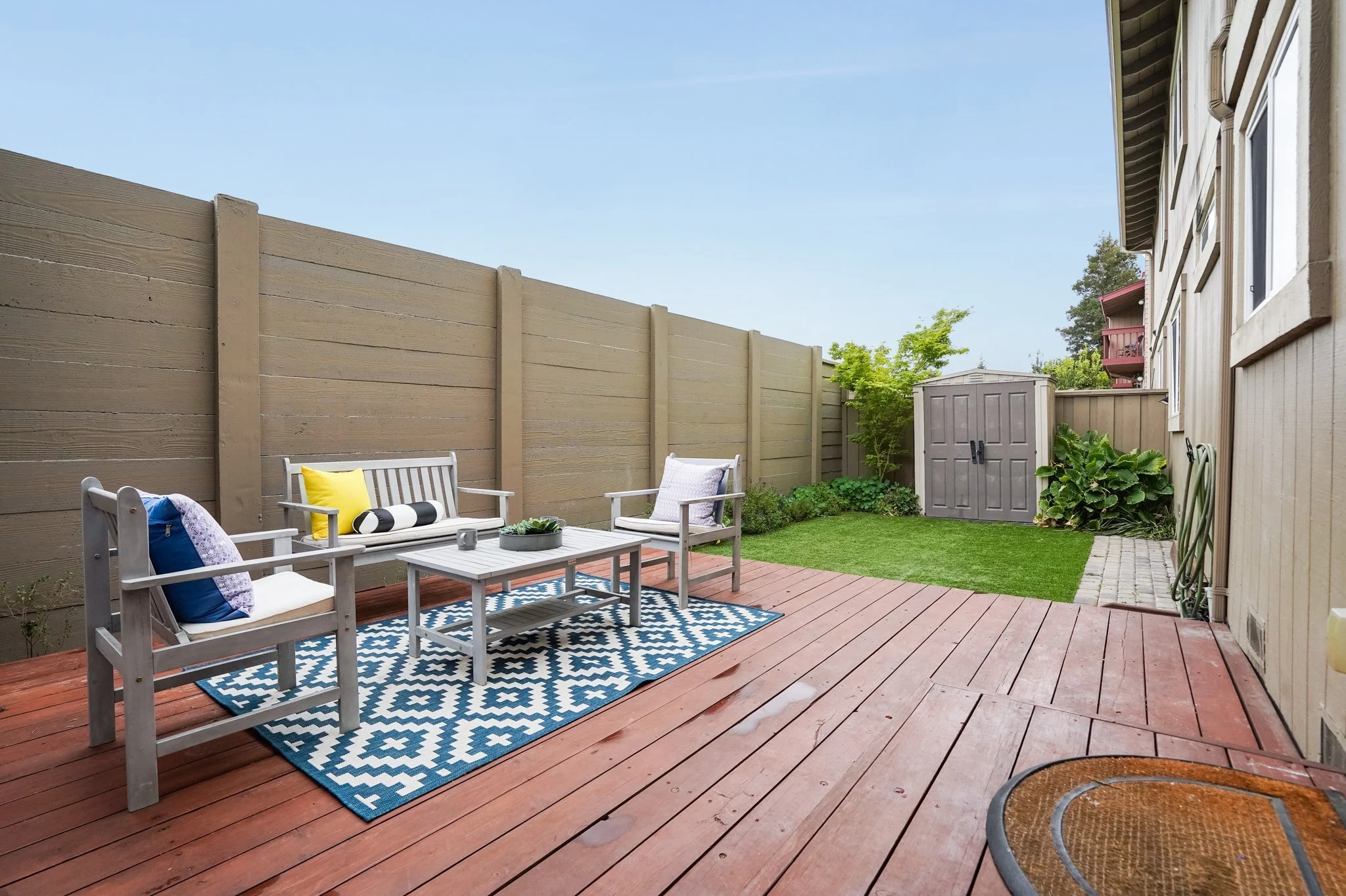 Enjoy the quiet complex in your spacious private backyard, a rare feature amongst condos