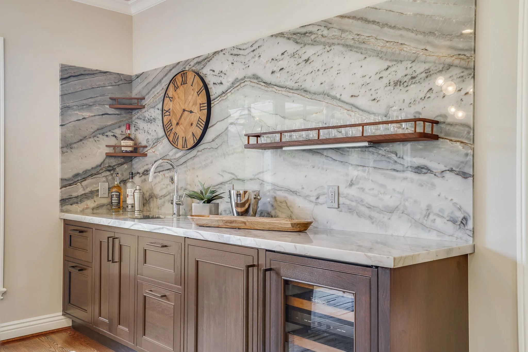 The built-in wet bar with chilled sparkling water on tap is fantastic for entertaining.