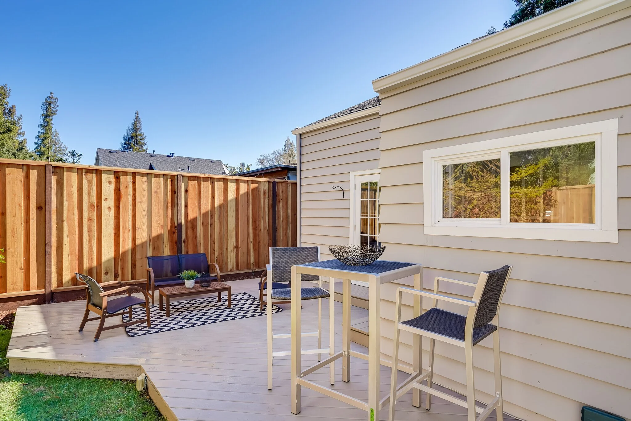 The updated back deck gets evening sun, perfect for outdoor afternoon and evening leisure