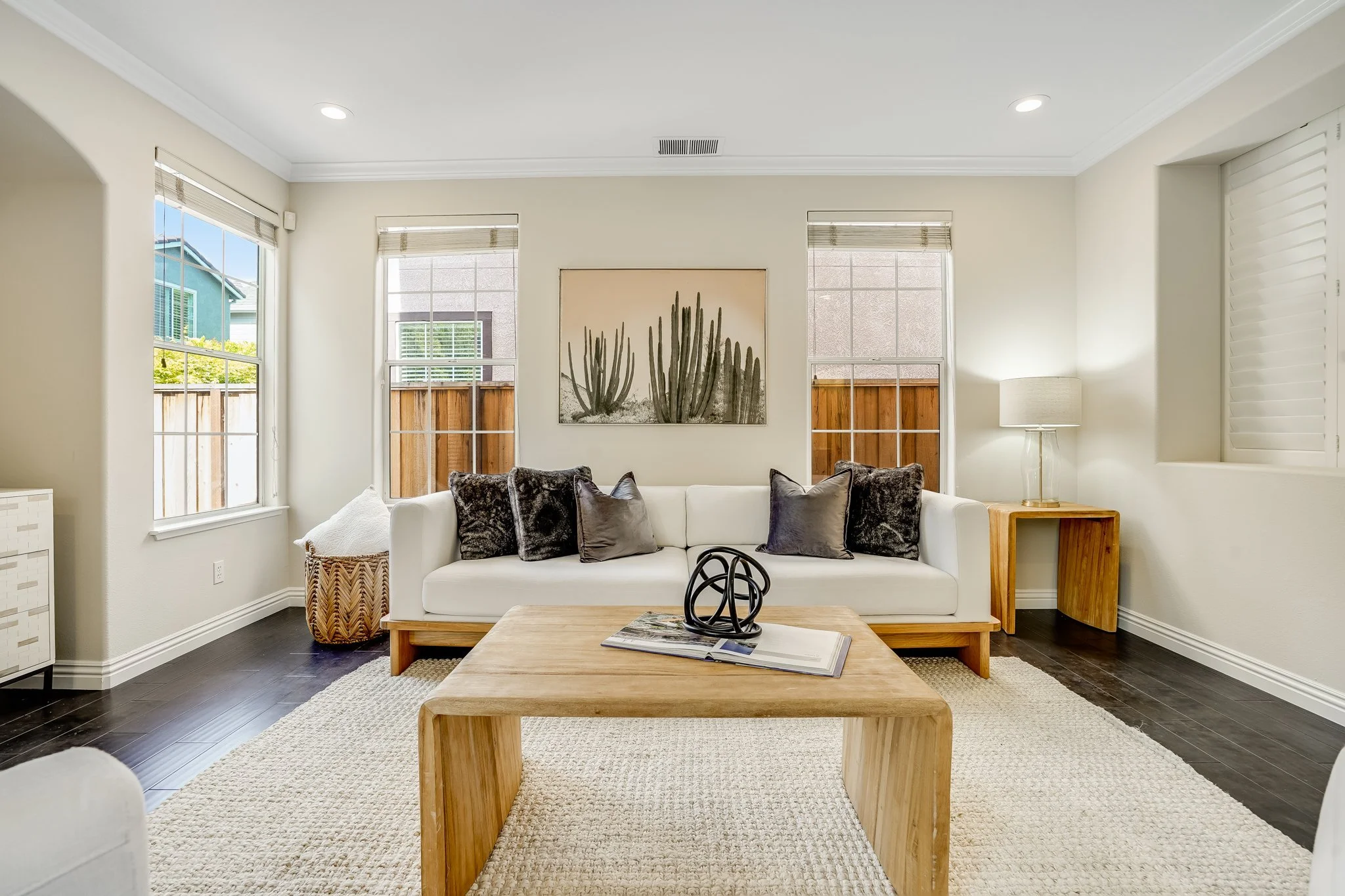 This home is spacious and bright, with broad windows and refreshed details throughout