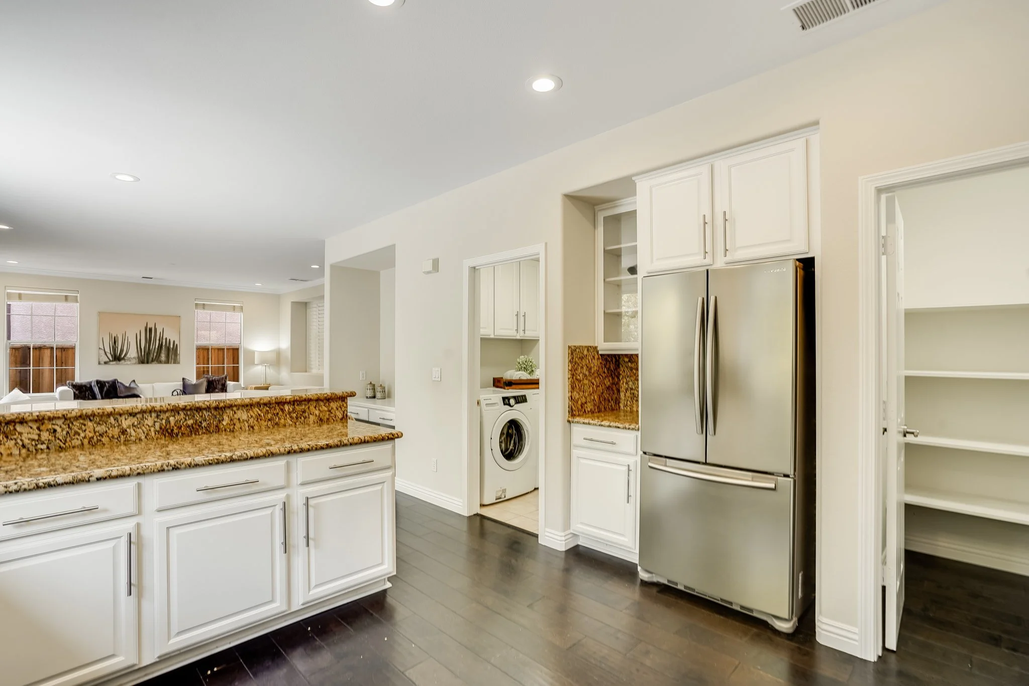 A dedicated laundry room with modern appliances leads to the two-car garage, which offers extra built-in storage